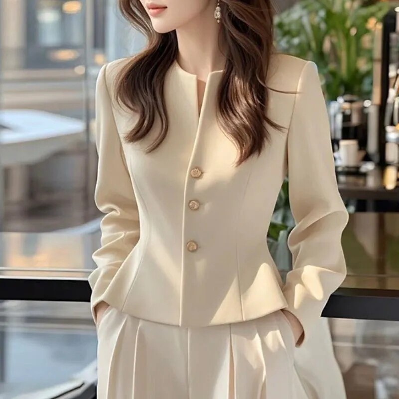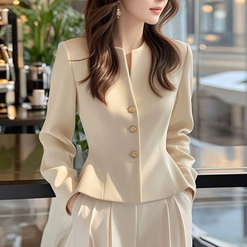 2025早秋新款小香风杏色短款外套高级感独特超好看气质收腰上衣女