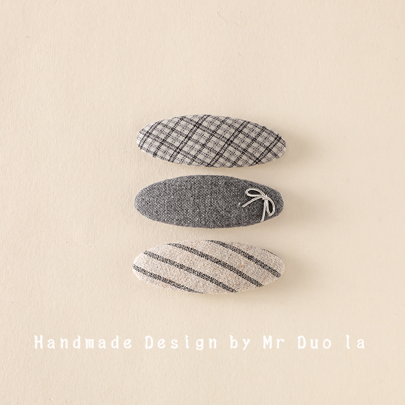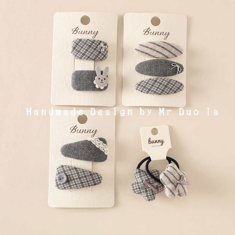 2025年新款女宝宝布艺格纹发夹女童灰色系刘海夹BB夹百搭发卡发饰