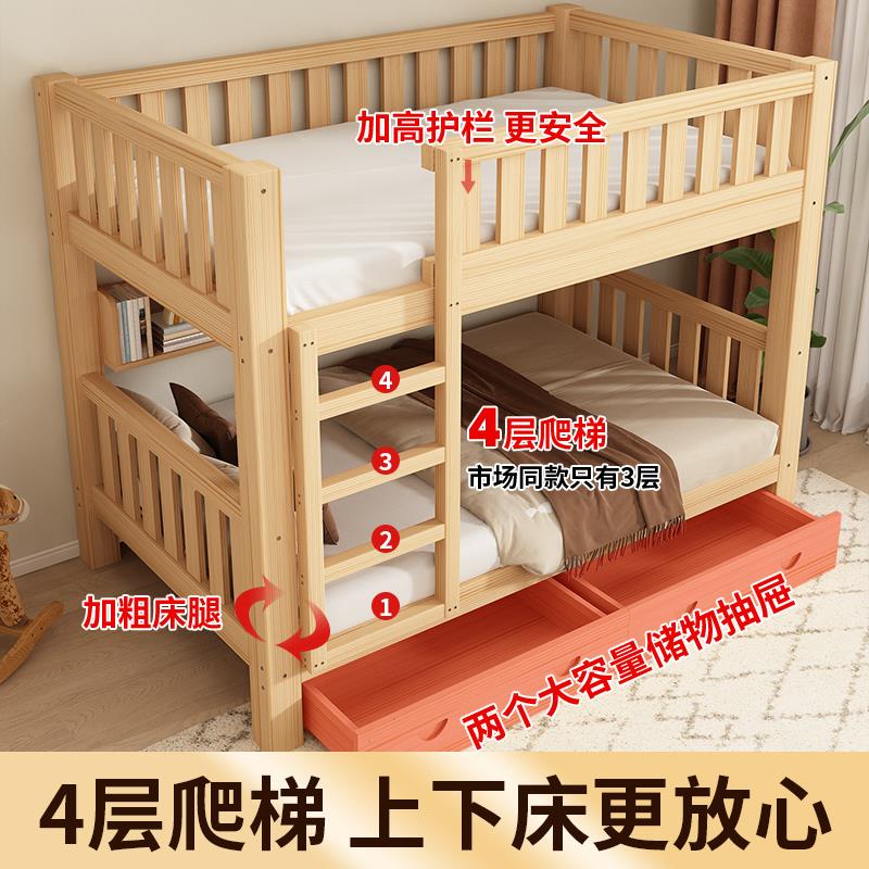 全实木高低床儿童上下床双层床宿舍成年大人上下铺子母床木床两层