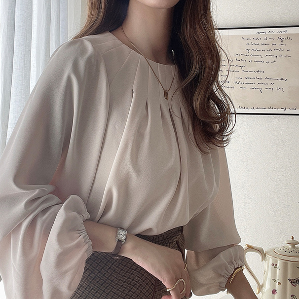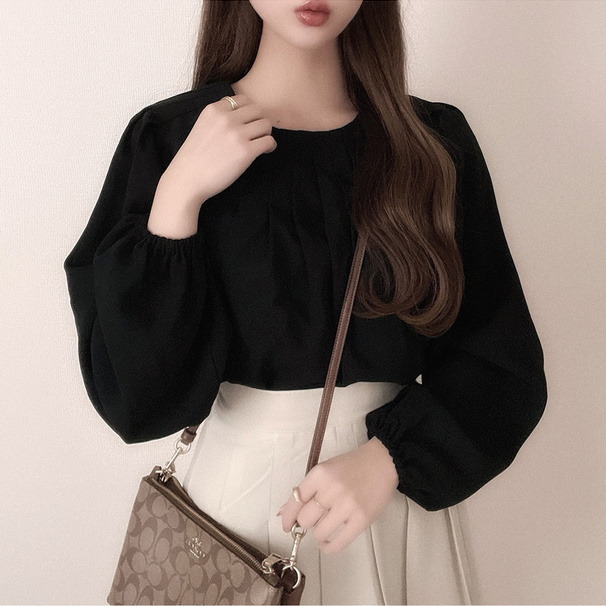 D05068日单新款客供料GL后纽扣圆领套头宽松女甜美气质长袖衬衫