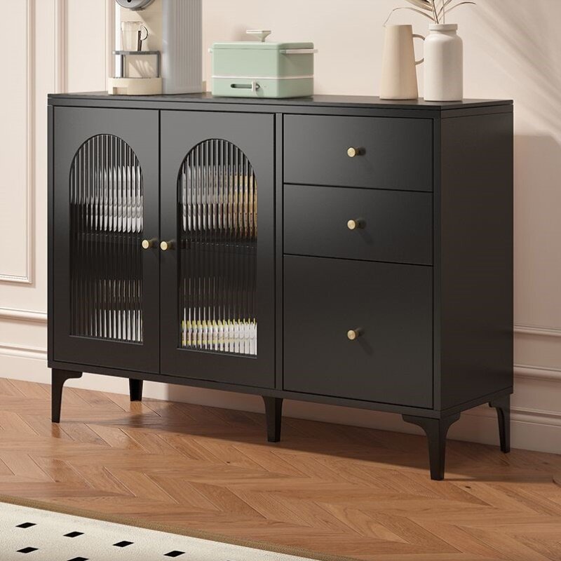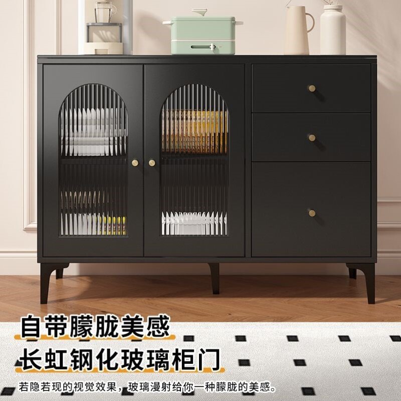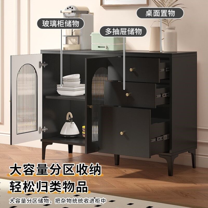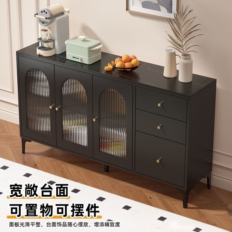 岩板餐边柜简约现代置物柜客厅茶水酒柜复古玄关柜侘寂风黑色柜子
