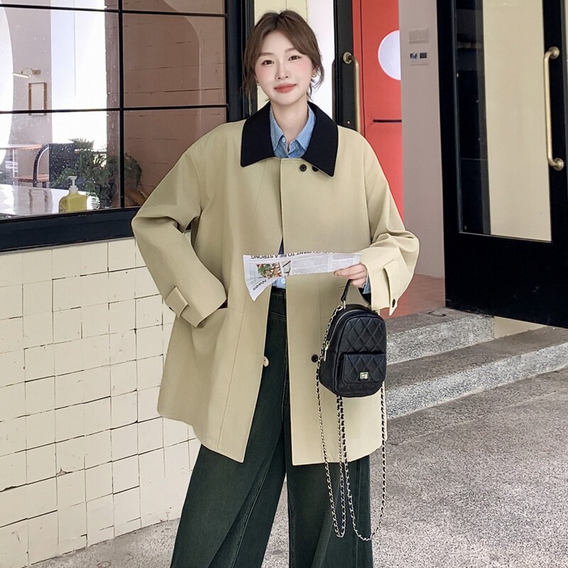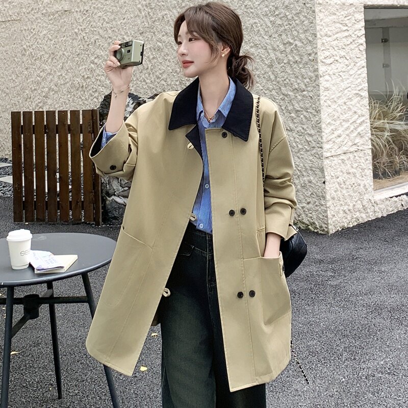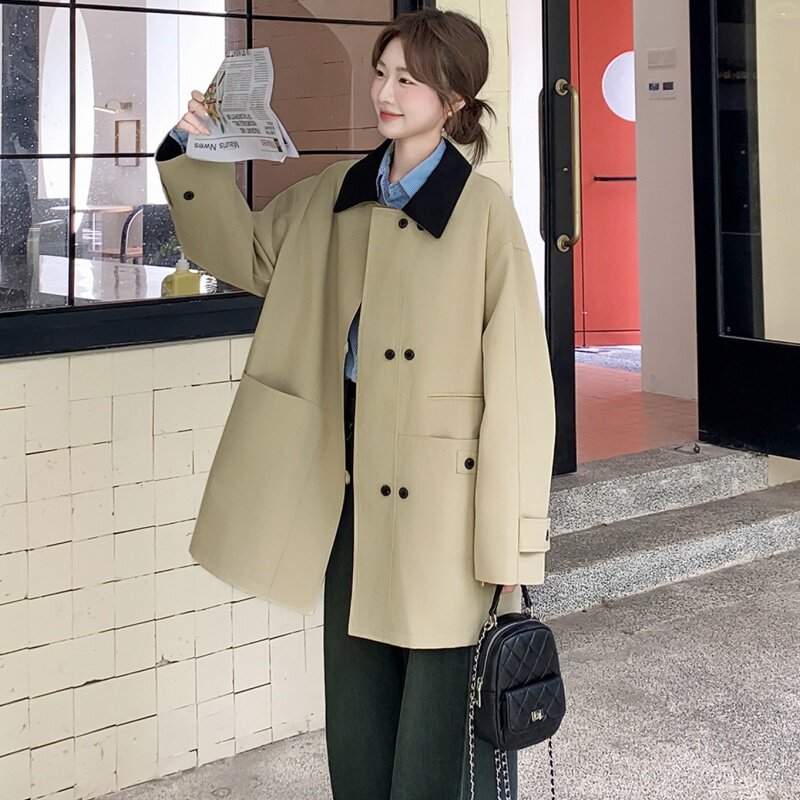 韩系高级感撞色翻领风衣外套女2025年秋季新款休闲小个子短款大衣