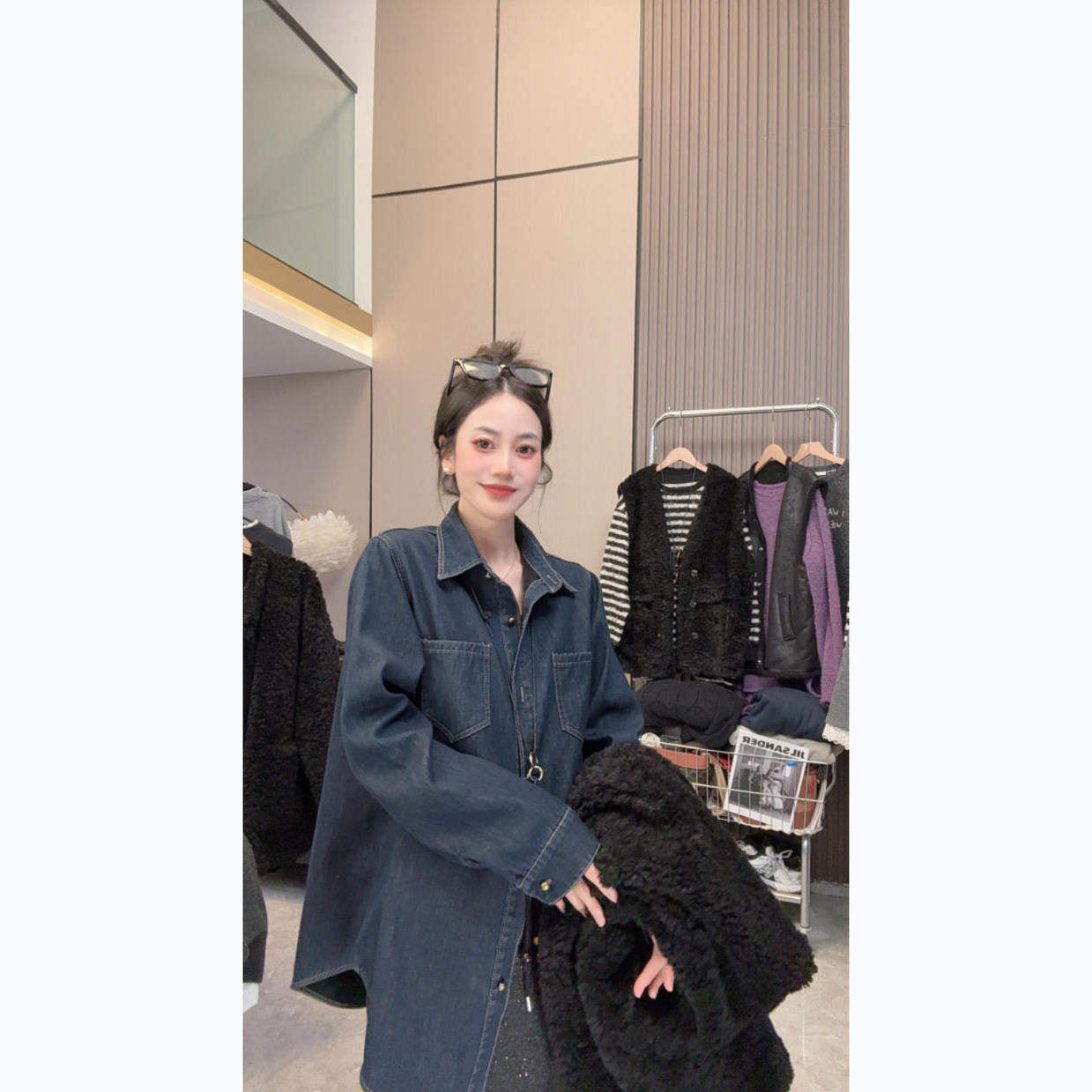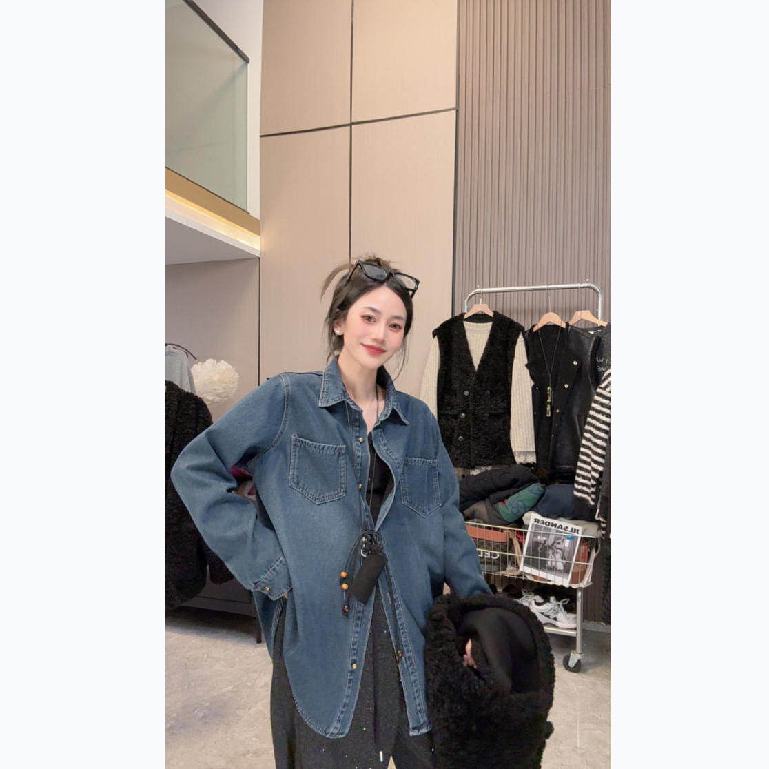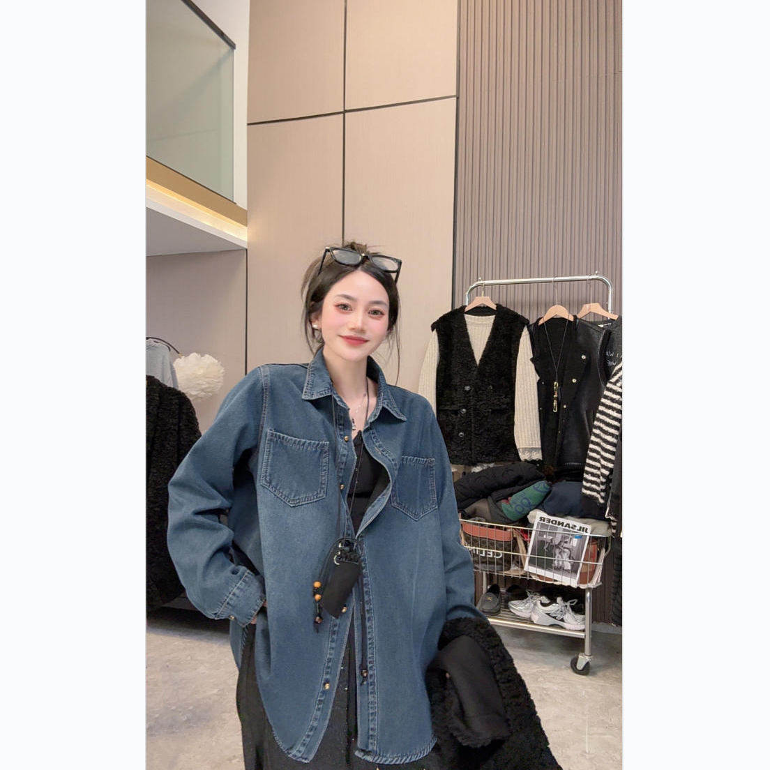 【温暖过冬】加绒~秋冬上新休闲简约宽松显瘦翻领中长款牛仔衬衫