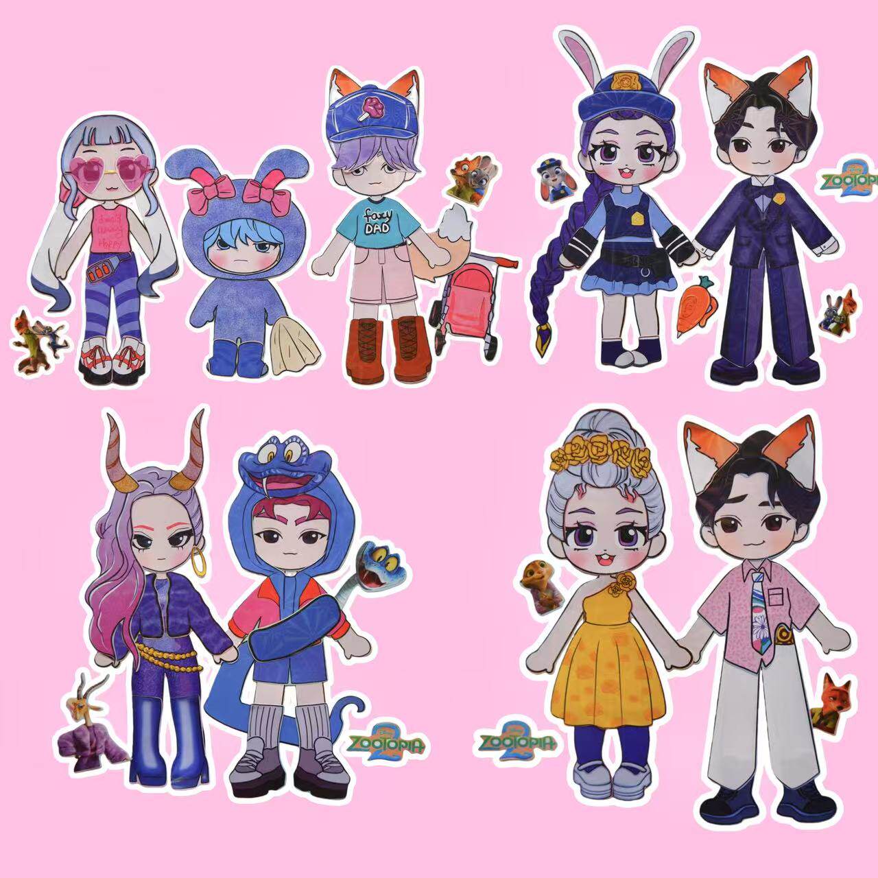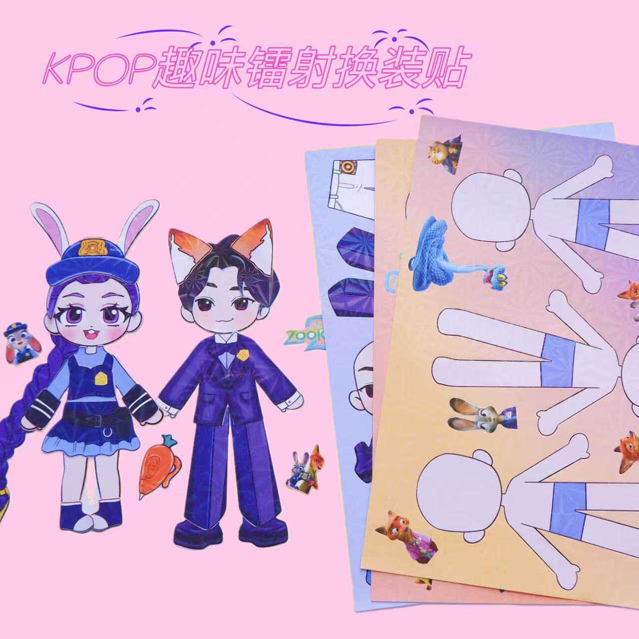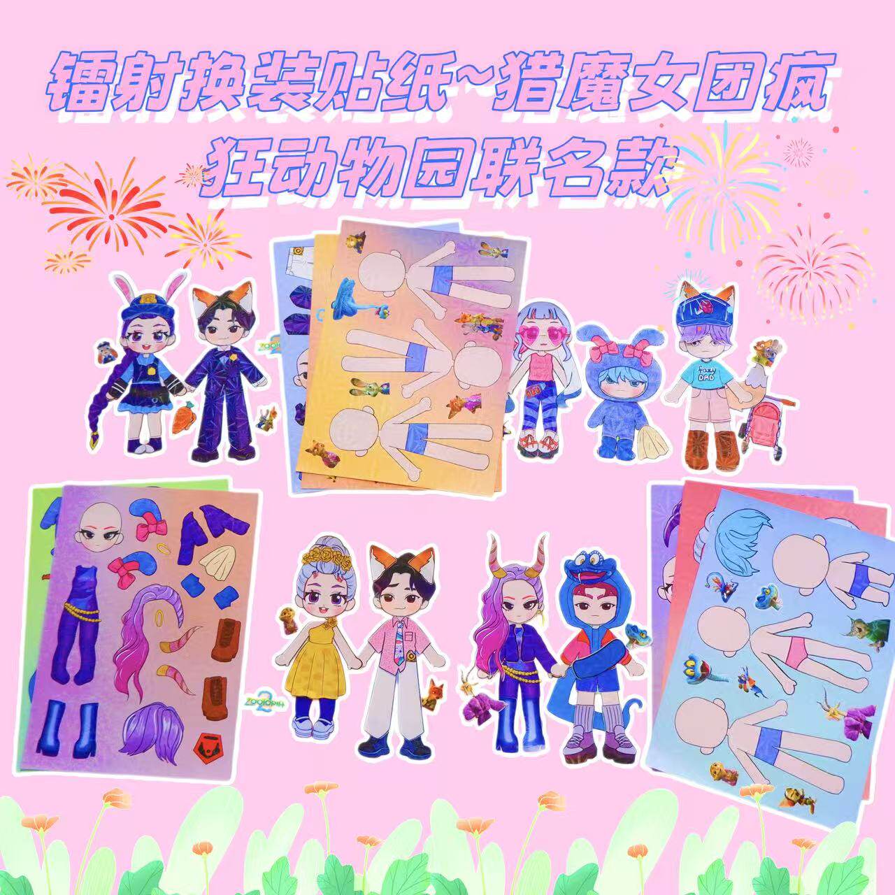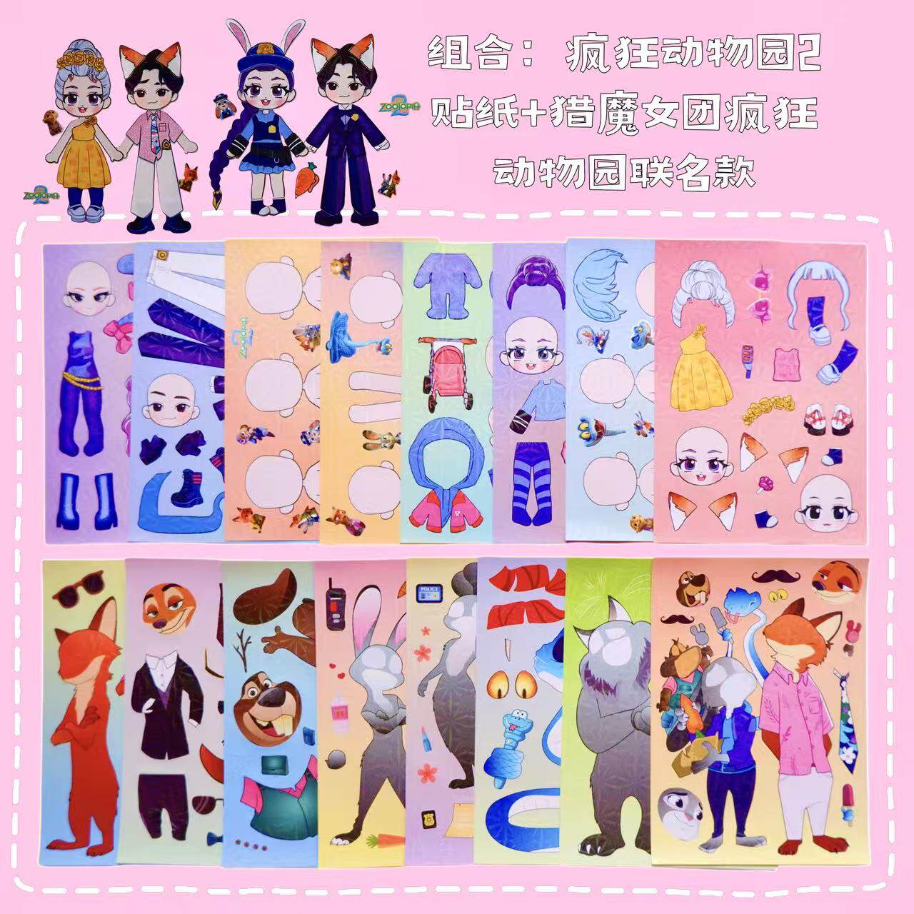 猎魔女团VS疯狂动物城联名换装贴纸diy益智创意手工贴画解压玩具