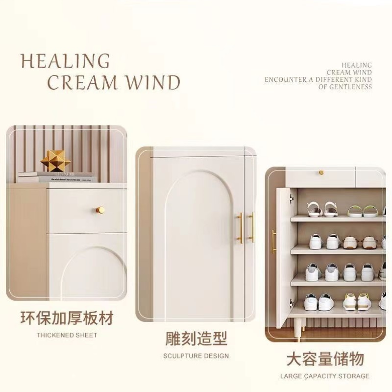 实木奶油风入户鞋柜带抽屉法式餐边柜玄关柜门厅柜靠墙柜子储物