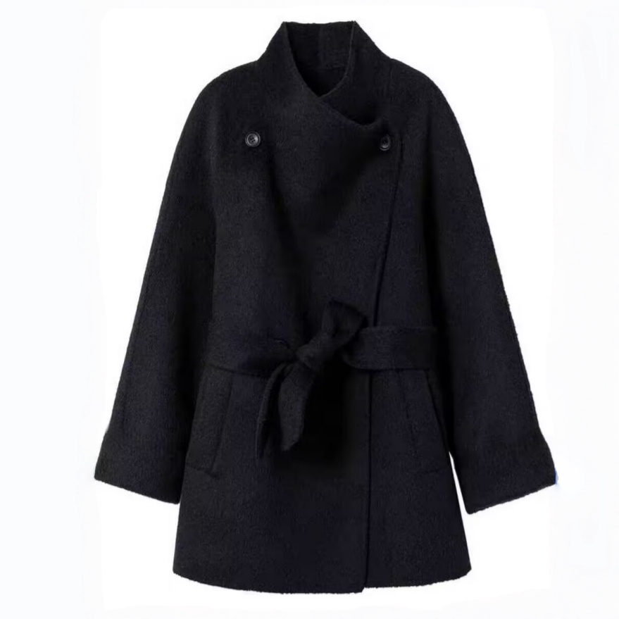 黑色双面羊绒毛呢子大衣外套女2025秋冬季新款小个子赫本风高级感