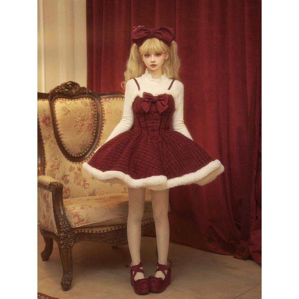 小初雪 冬装新款红色新年战袍毛绒Lolita连衣裙斗篷外套披肩套装