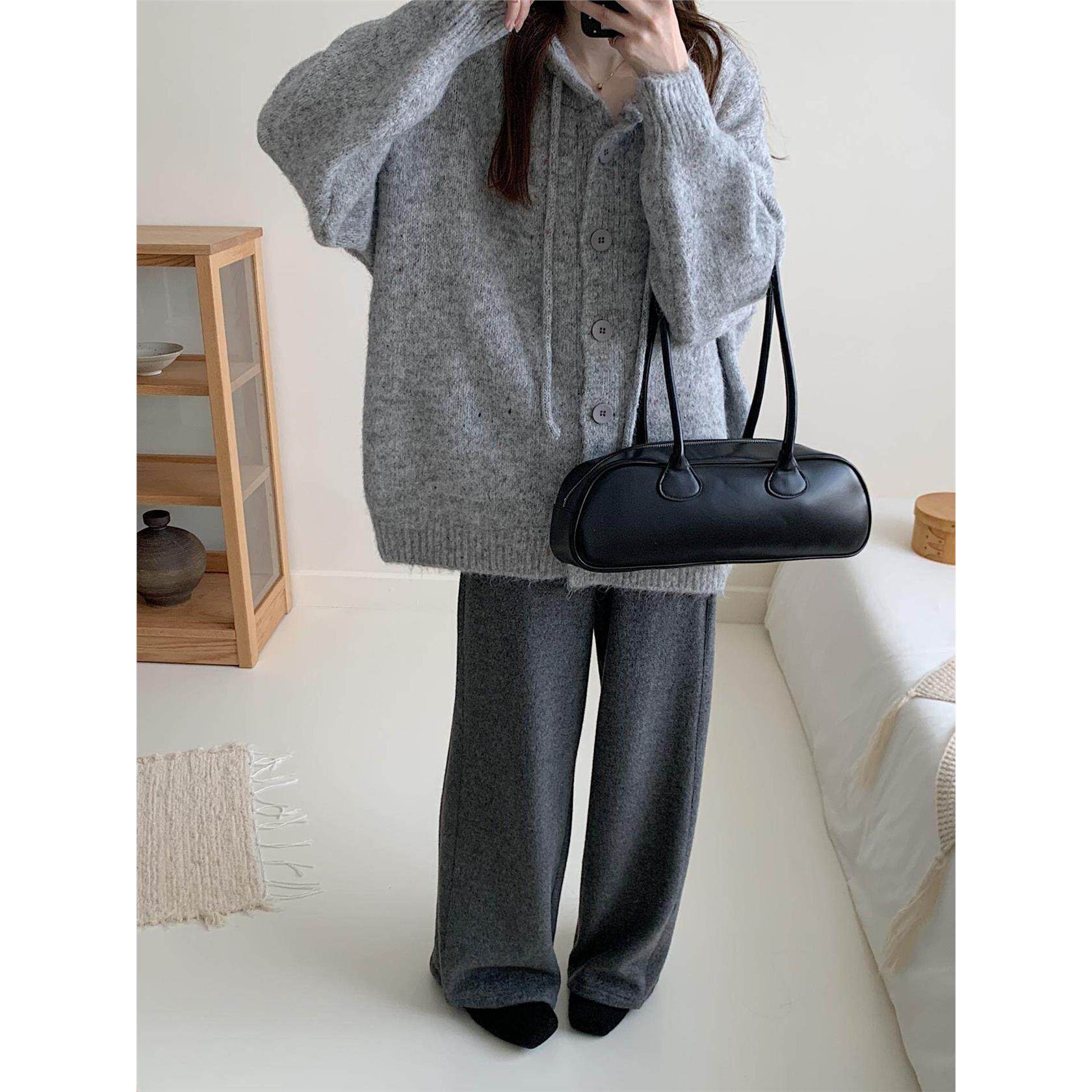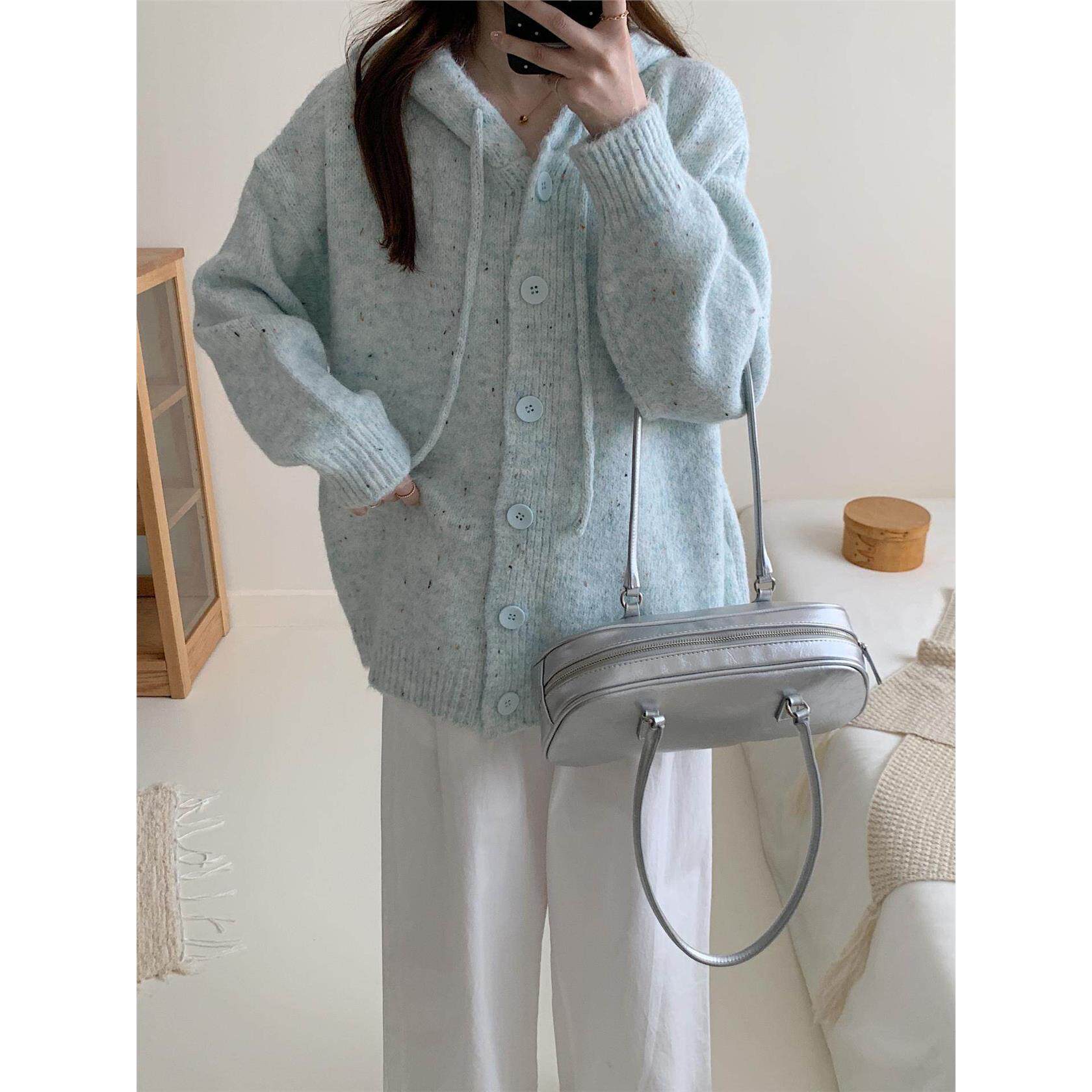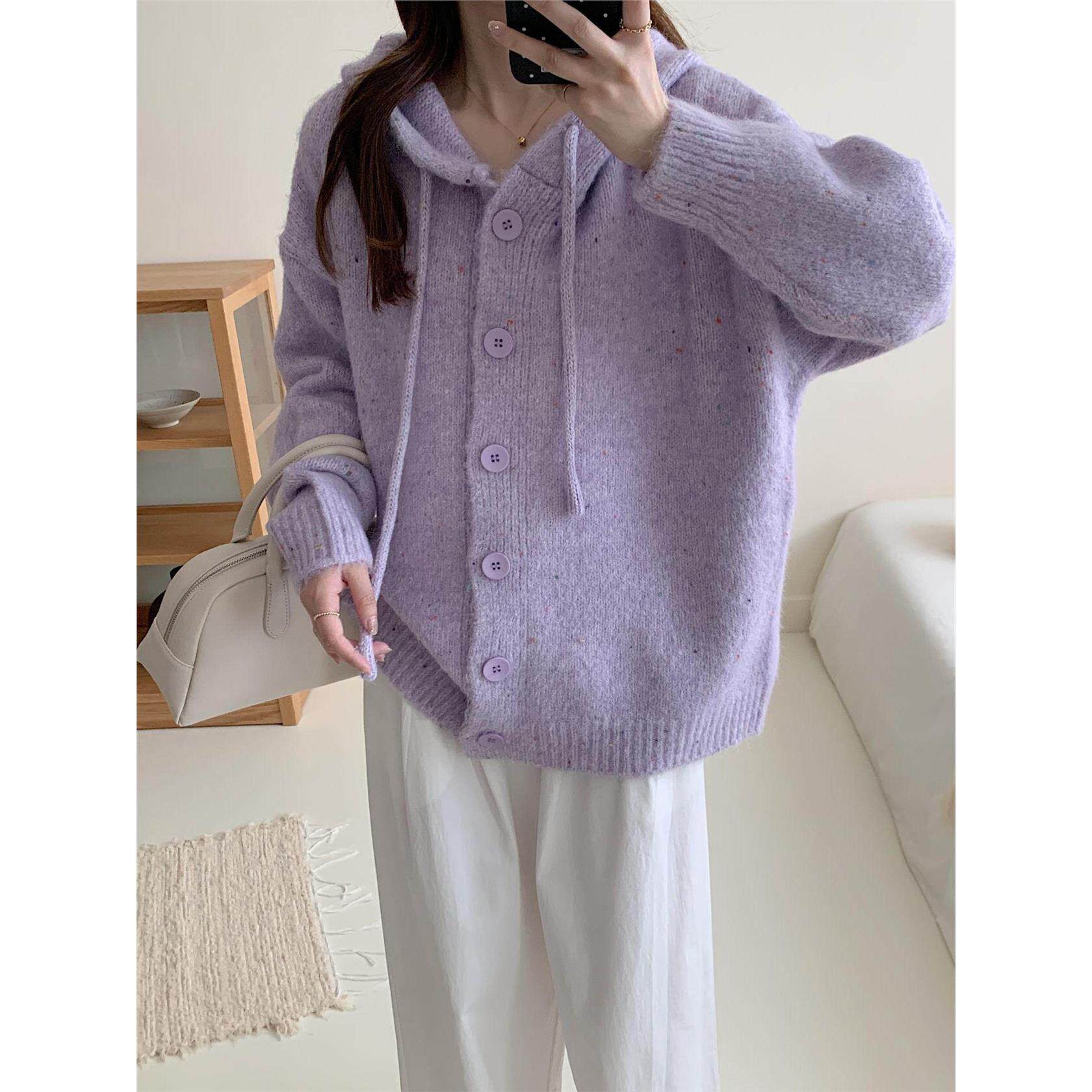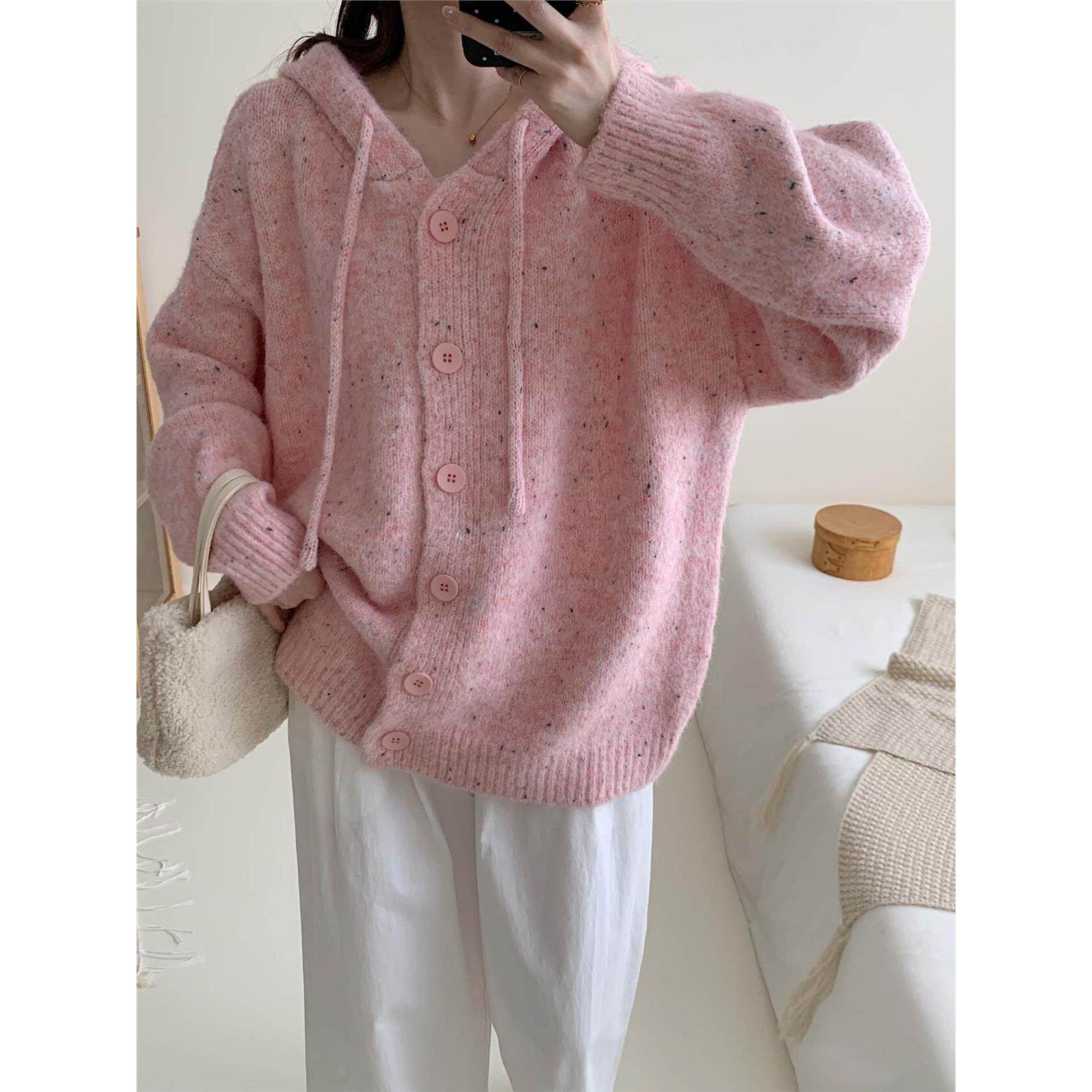 米色连帽毛衣开衫外套女秋冬季加厚宽松慵懒风带帽针织衫卫衣上衣