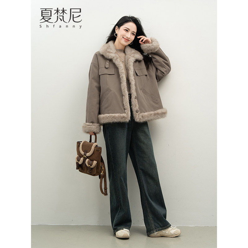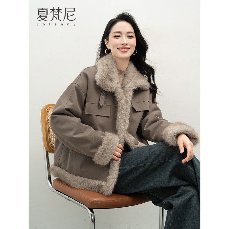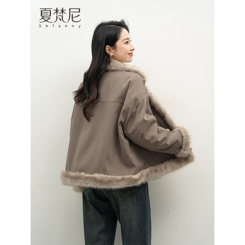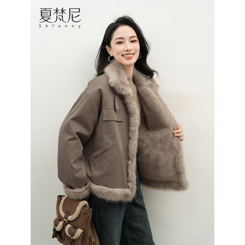 夏梵尼椰奶雪绒2025女装冬时髦机车风巨好看厚款加绒保暖毛毛外套