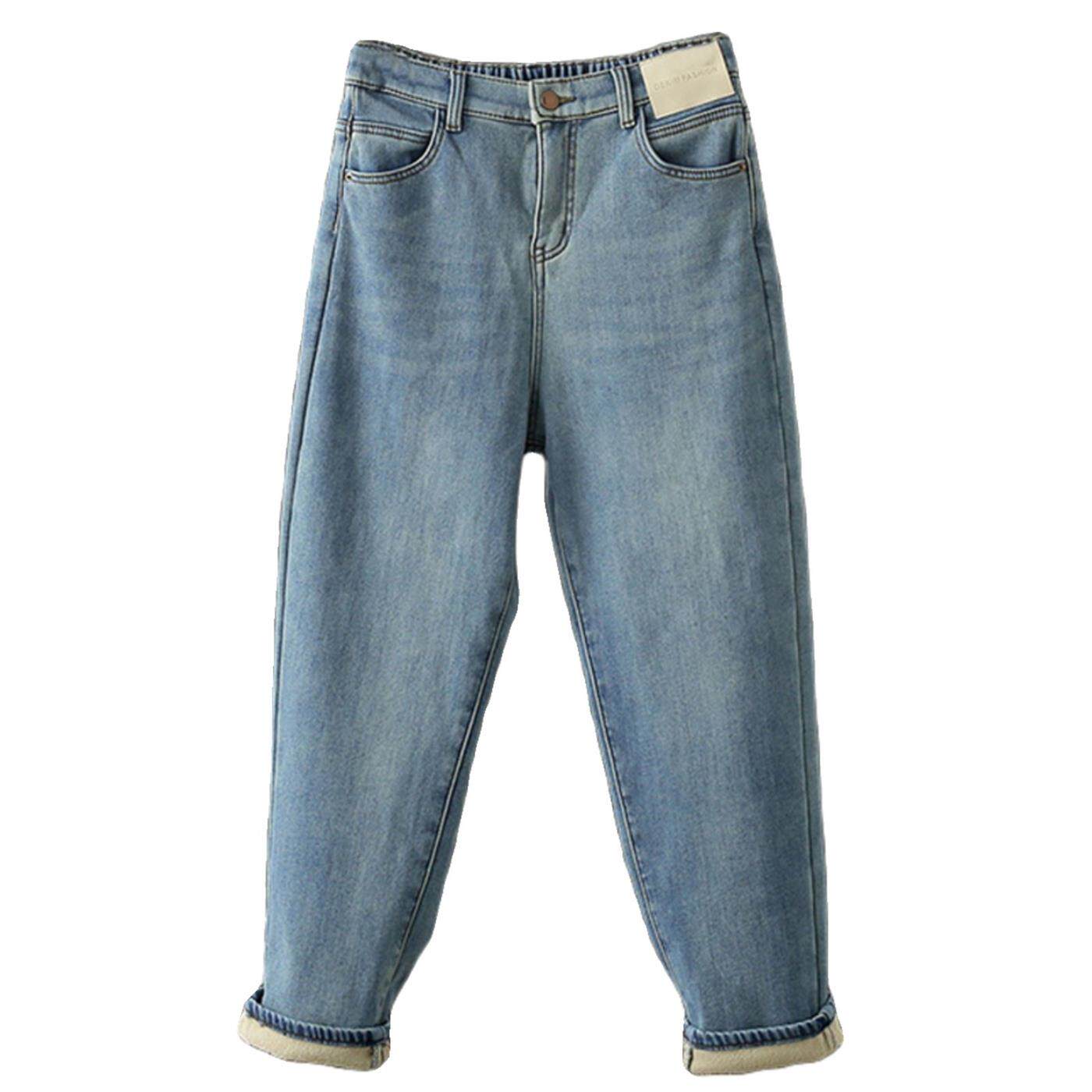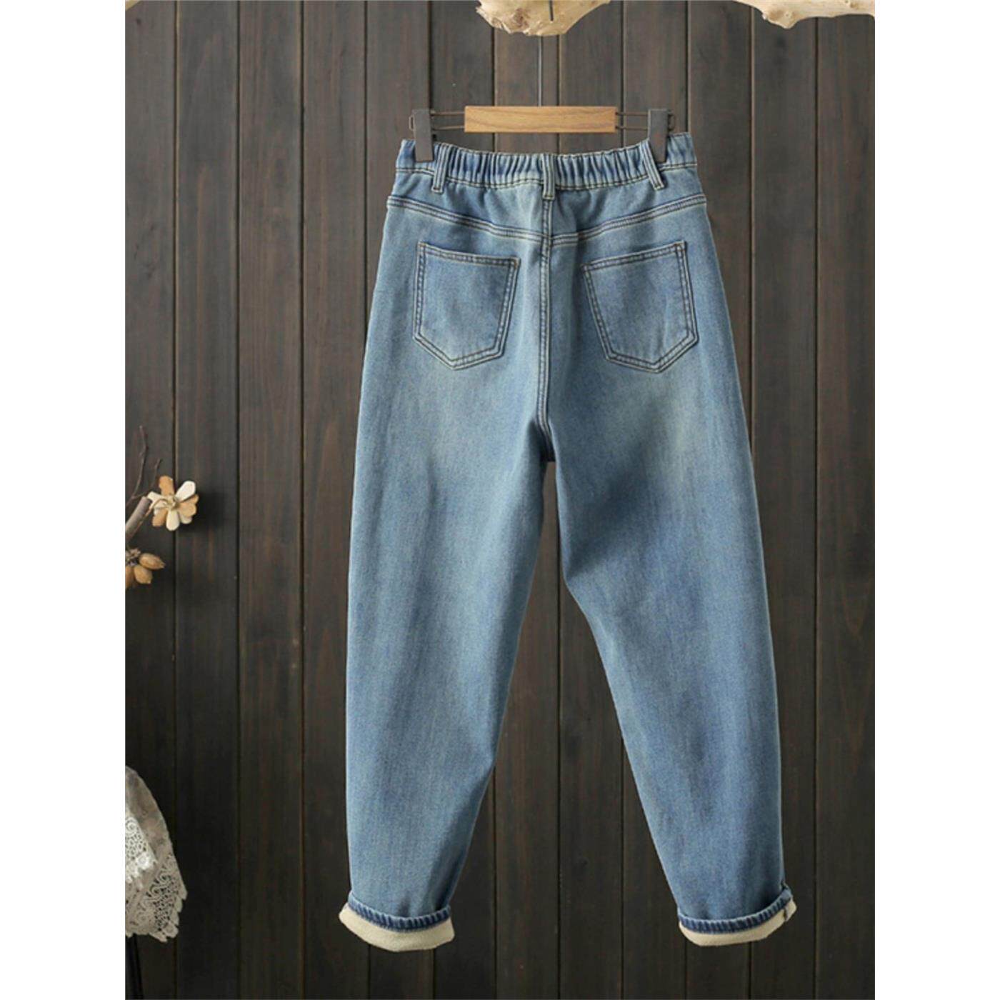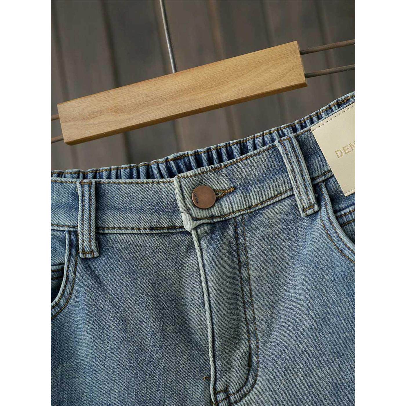 秋冬大码100公斤浅蓝色天鹅绒加厚后宫牛仔裤覆古宽松休闲爸爸胡