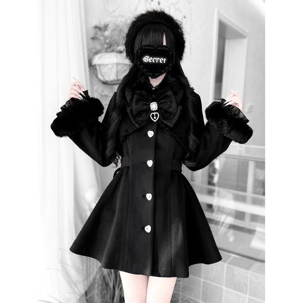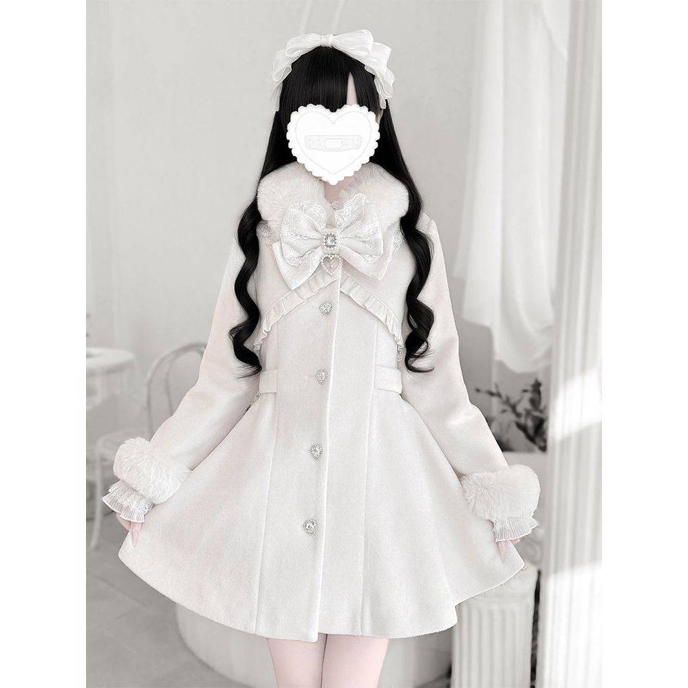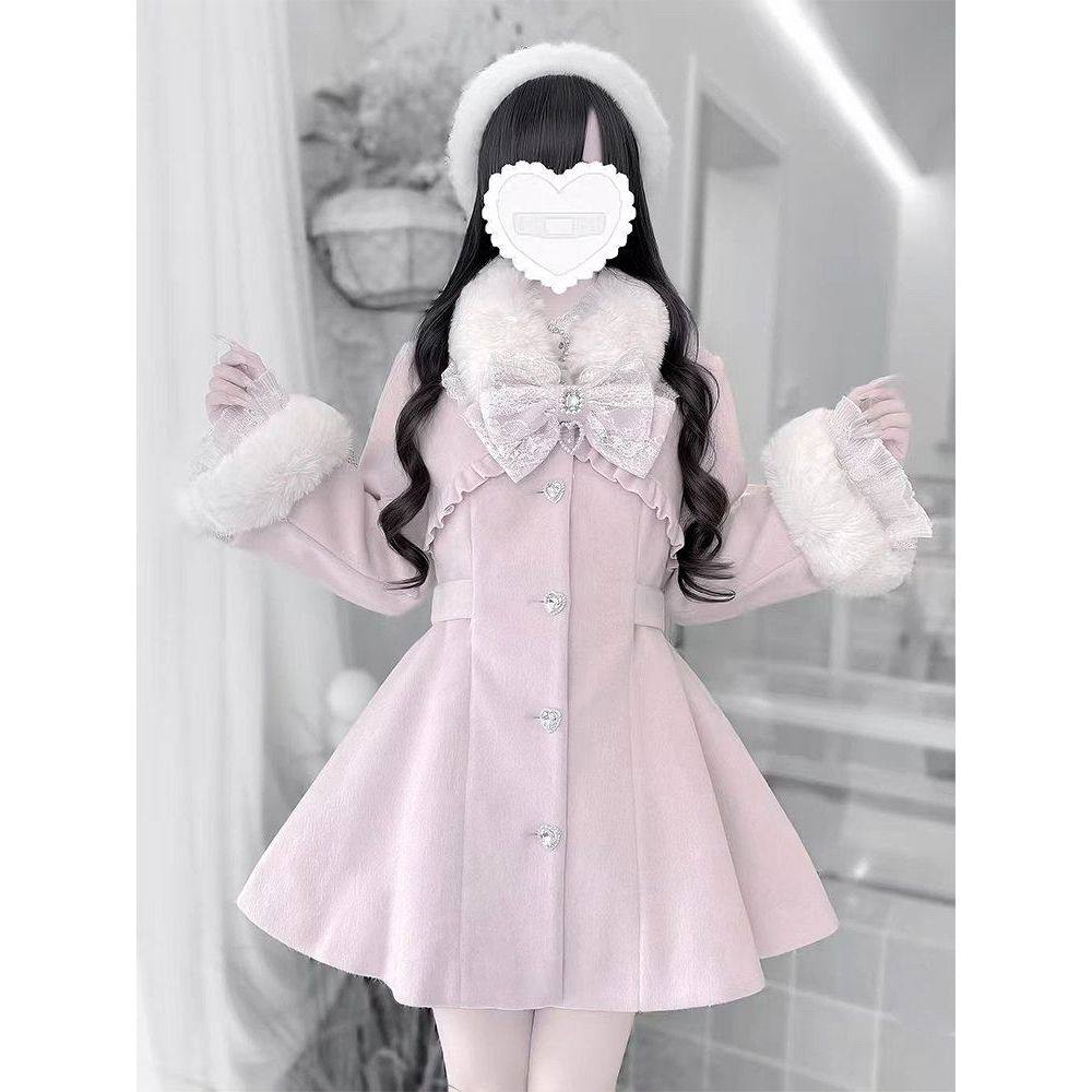 首页> 女装> 绒绒冬日 冬季新款日系温柔量产型毛领蝴蝶结中长款毛呢外套套装