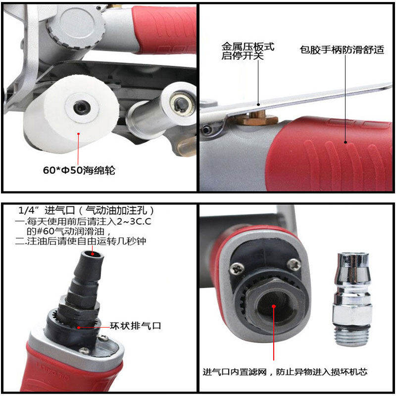 台湾进口气动砂带机金属不锈钢小型拉丝机坦克研磨抛光机气动磨机