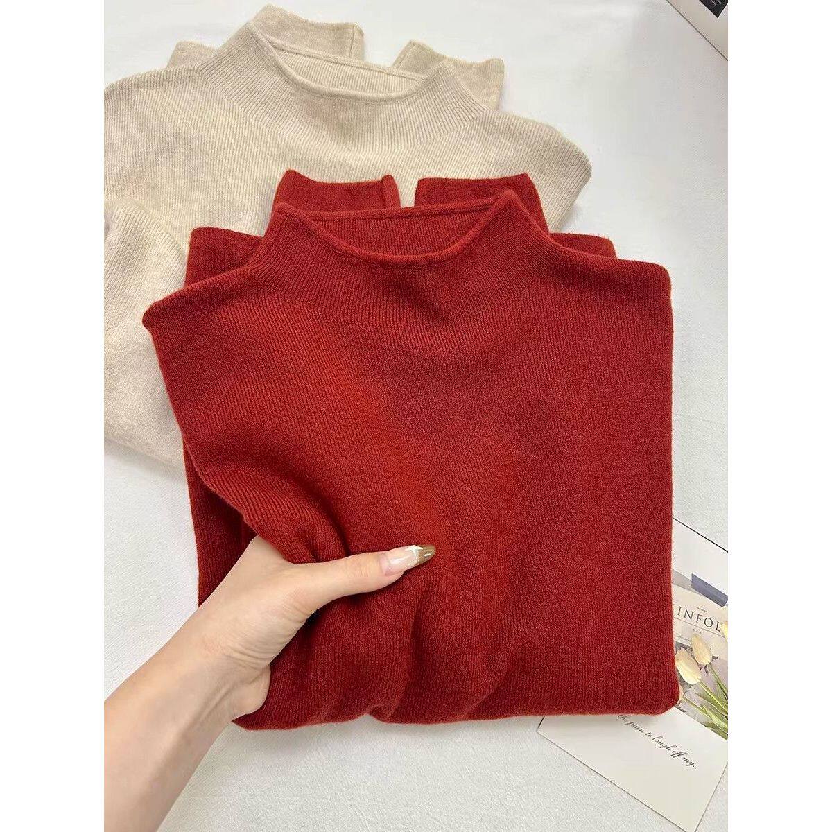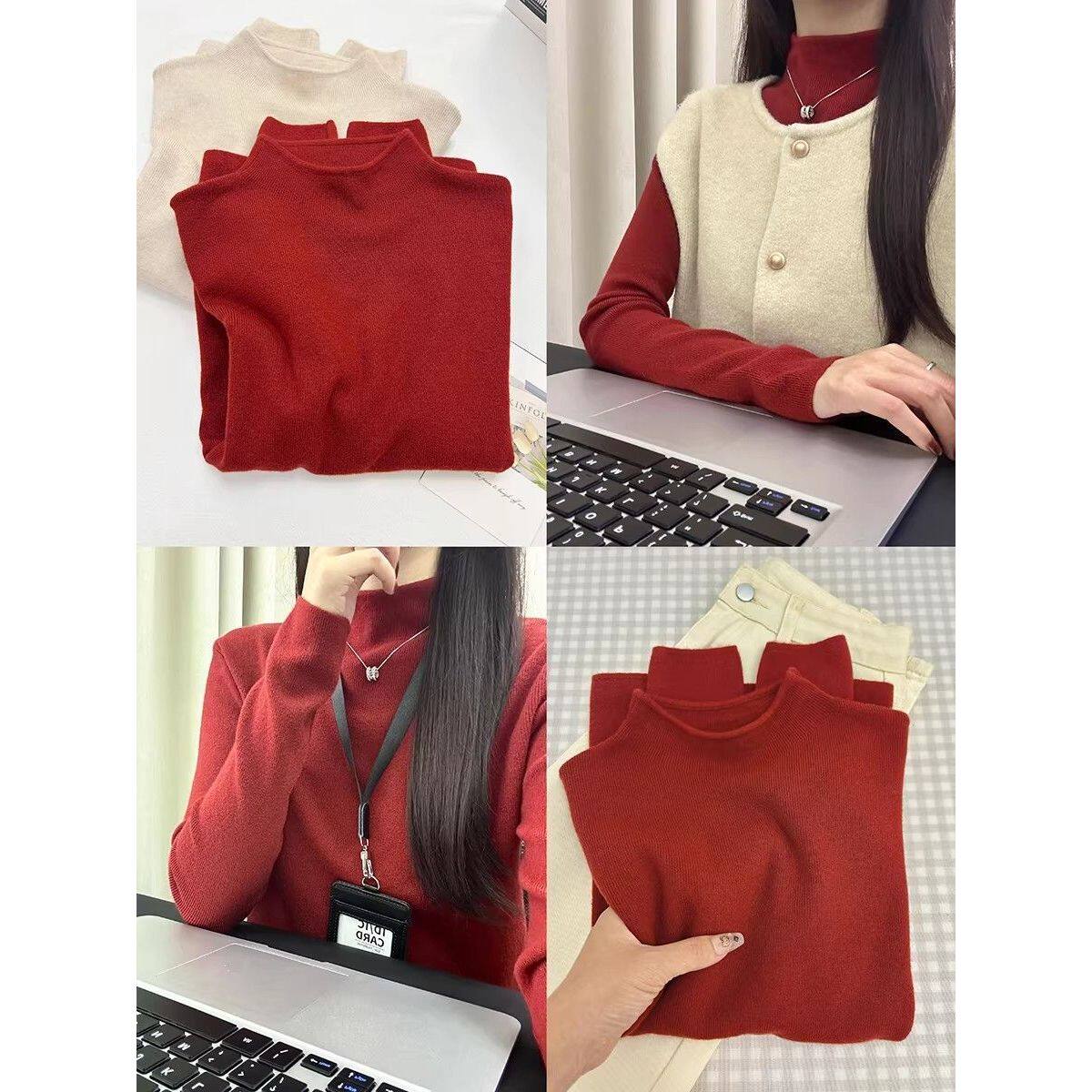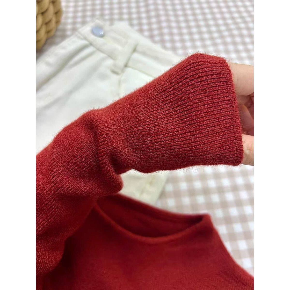 过新年氛围感安可拉红色叠穿针织马甲女秋冬打底毛衣两件套装上衣