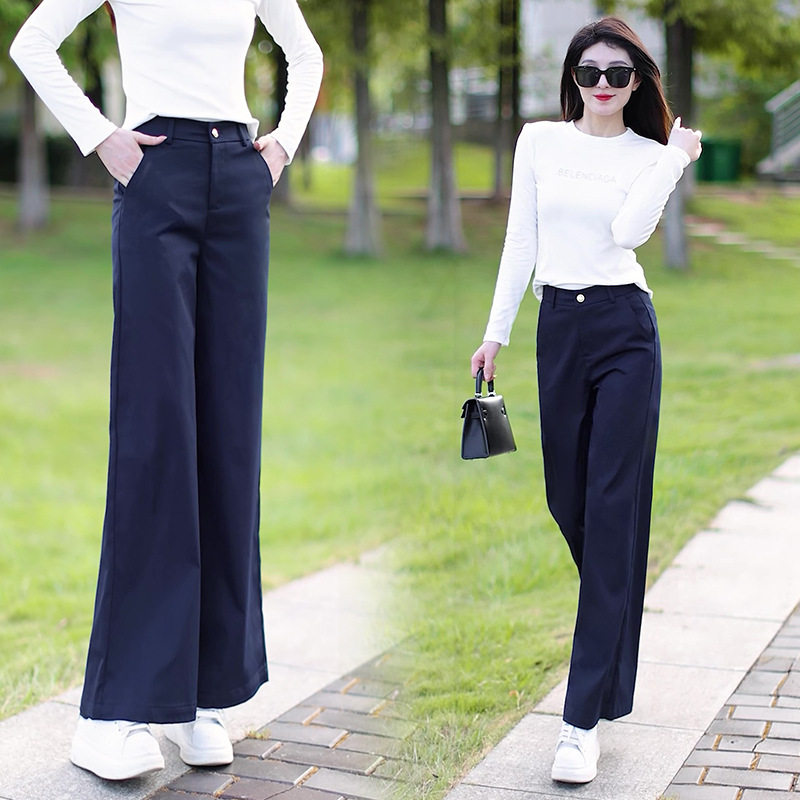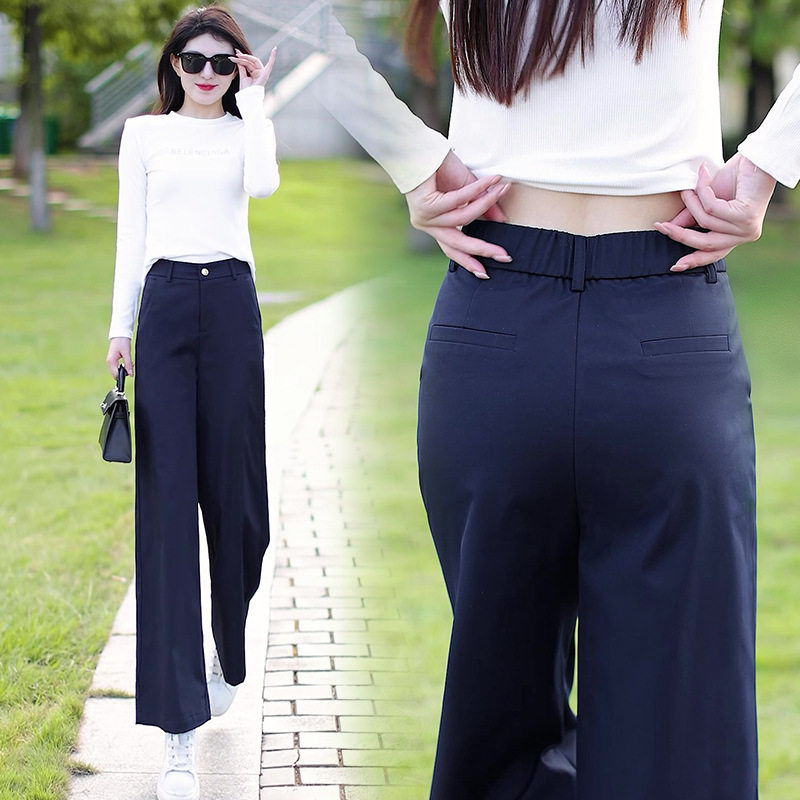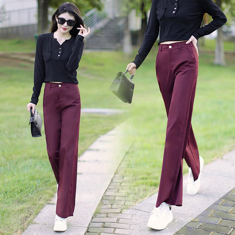 阔腿裤女春秋季2026新款高腰休闲裤垂感宽松窄版直筒百搭紫色长裤