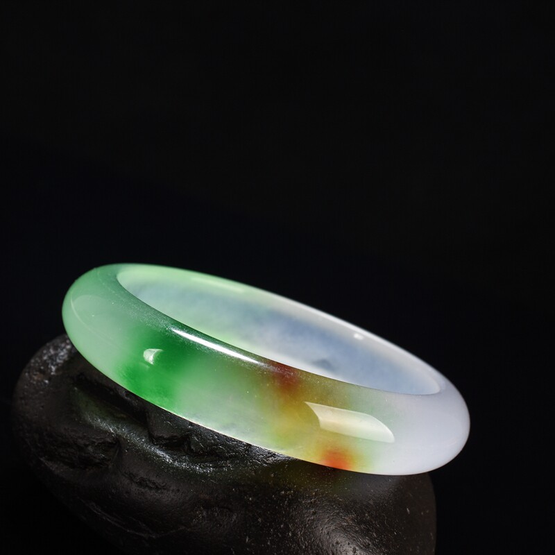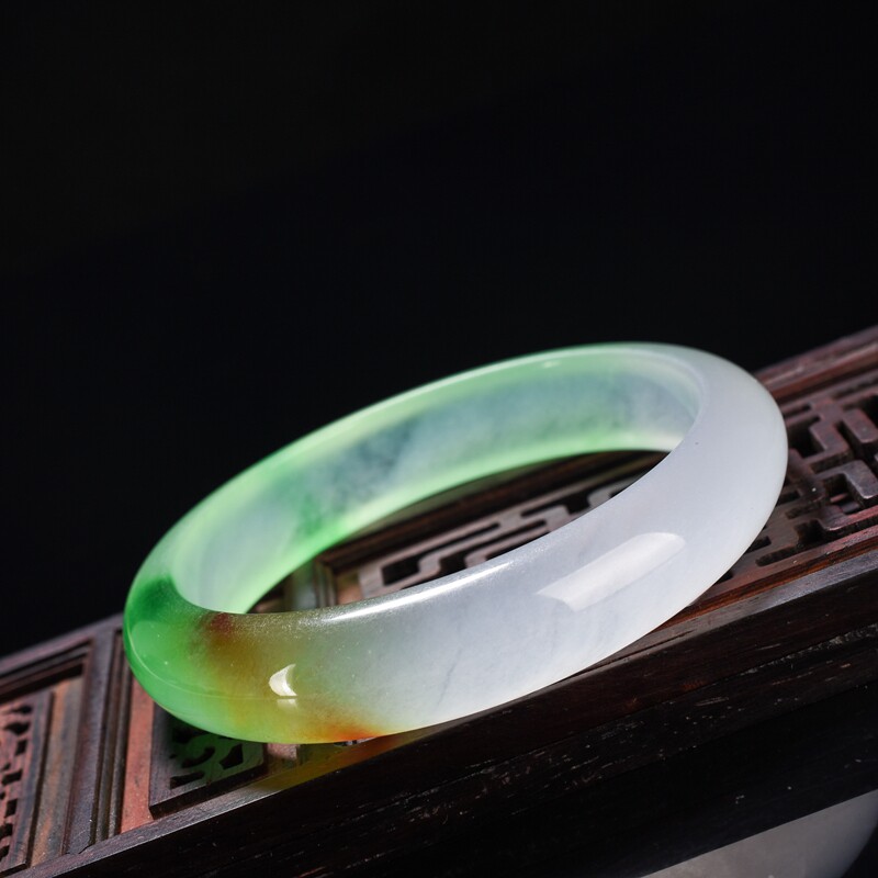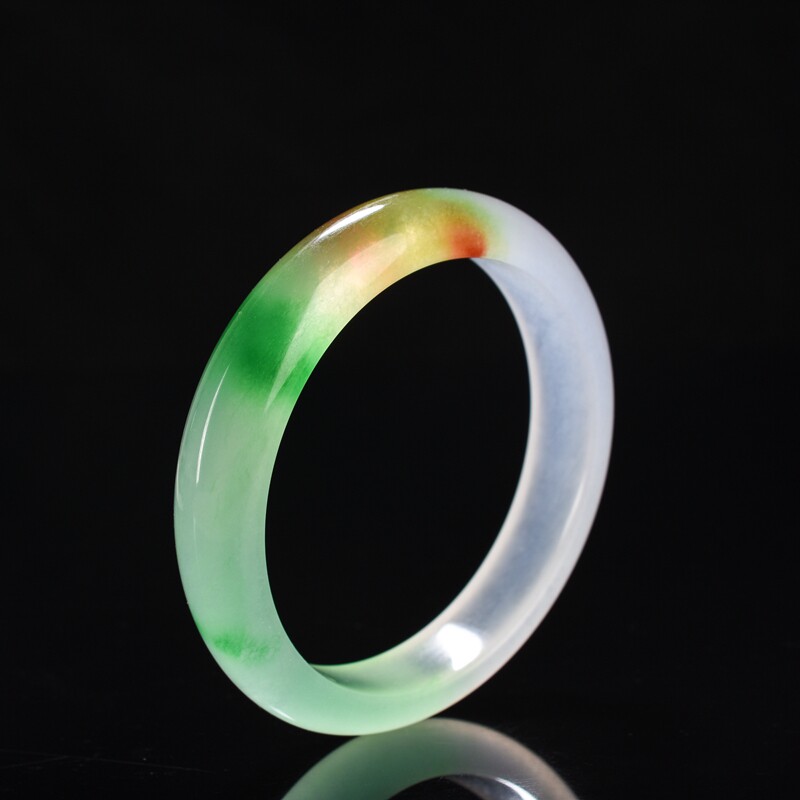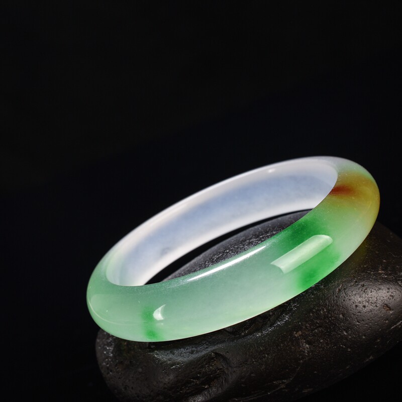 缅甸冰种玉手镯冰透飘春色飘黄翡宽版女款三彩白绿黄翡翠玉石玉镯