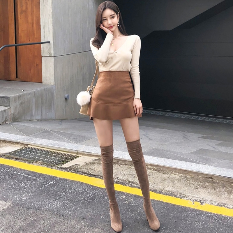 卡其色半身裙秋冬女鱼尾裙短裙弹力高腰显瘦一步裙包臀防走光裙裤