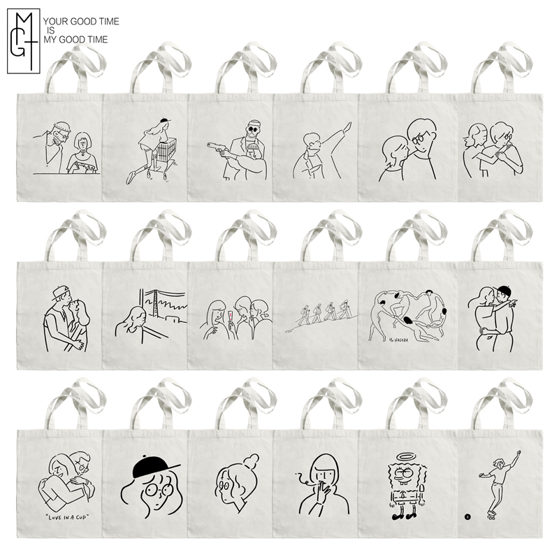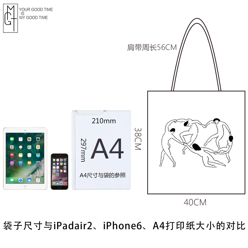 自制长场雄 日本插画 简笔画可爱日系帆布包女单肩 小清新 购物袋
