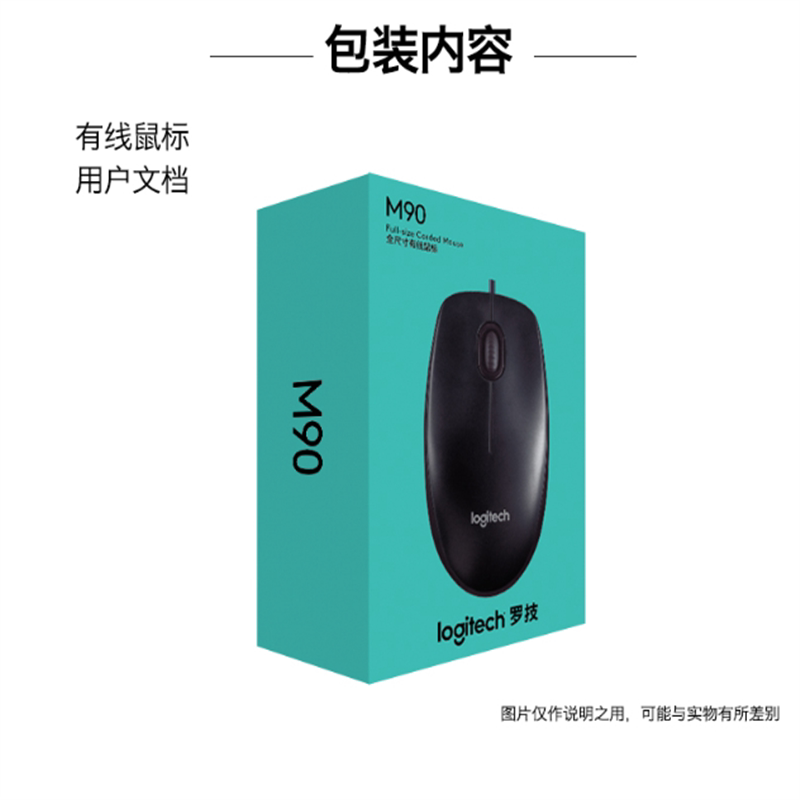 罗技M90有线鼠USB连接台式笔记本电脑家用办公游戏左手通用耐用