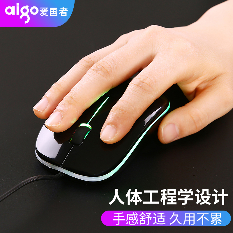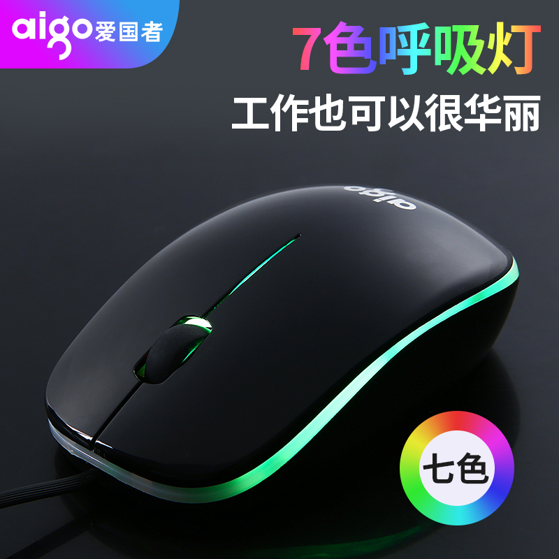 爱国者发光鼠有线七彩USB接口小鼠女生办公家用台式笔记本