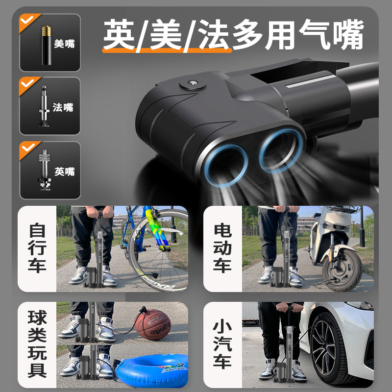 得力打气筒自行车家用通用新型高压电动瓶车山地车便携式充气管子