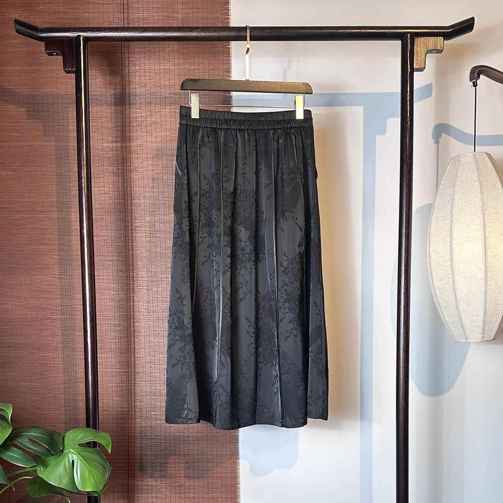 【6107】孔雀 香云纱100桑蚕丝 40姆米 刻花花萝半身裙 马面裙