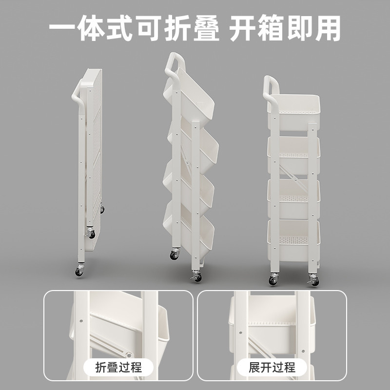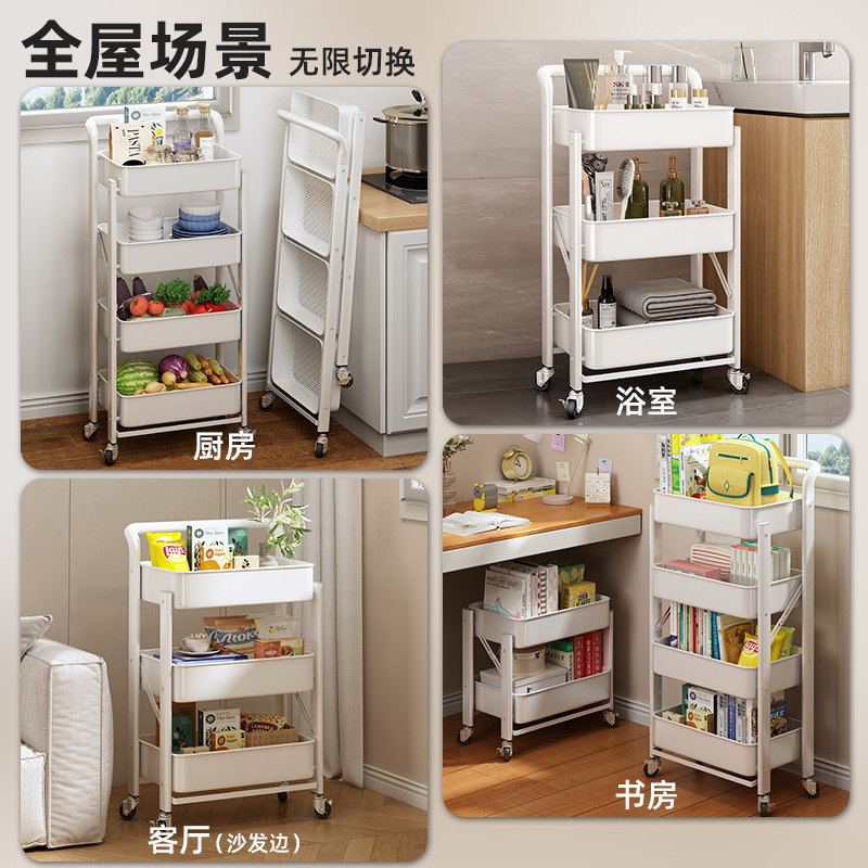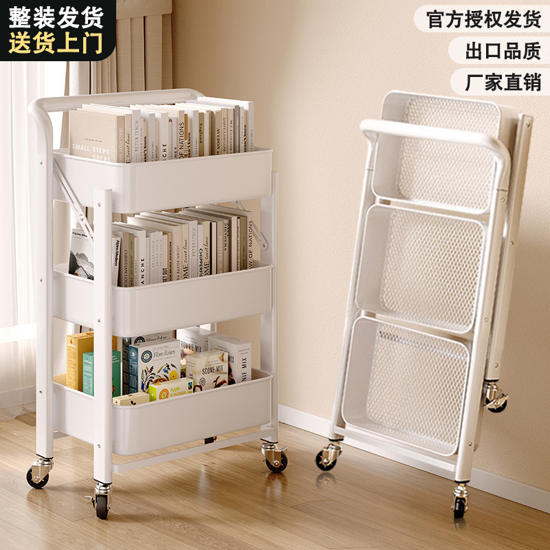 可折叠小推车置物架家用铁艺儿童书架多层带轮可移动零食收纳架子