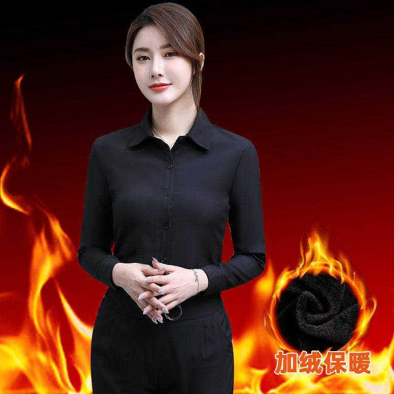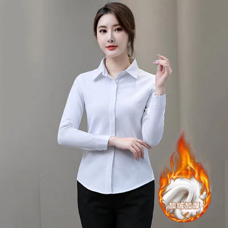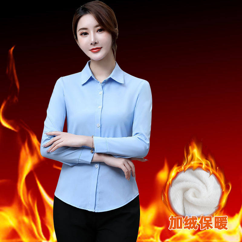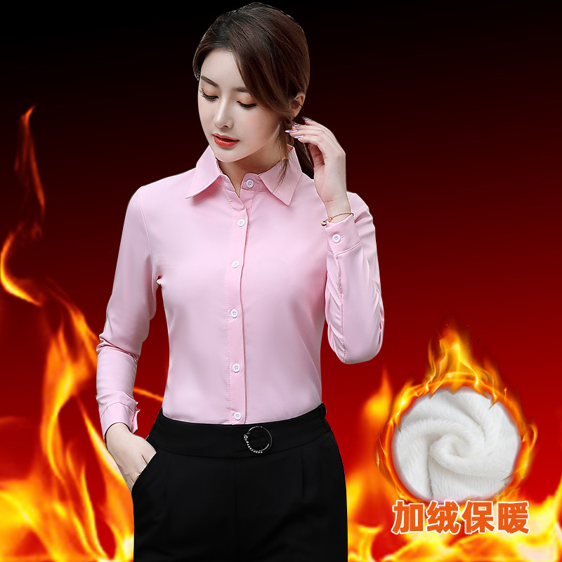 加绒衬衫女秋冬装保暖打底衫气质衬衫韩版纯色职业装工作服上衣衫