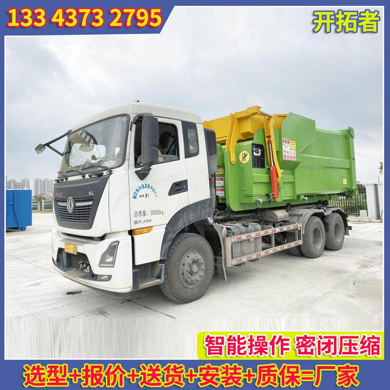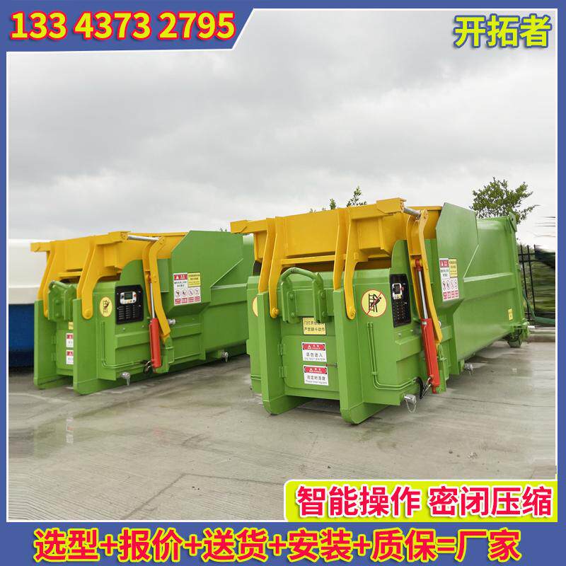 园区生活垃圾处理站设备升级改造 水平连体式垃圾压缩机翻斗上料