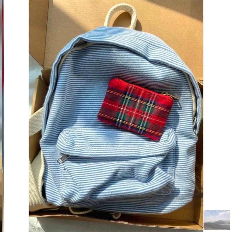韩版慵懒风条纹外出旅游大容量书包蓝白上课网红简约爆款双肩新品