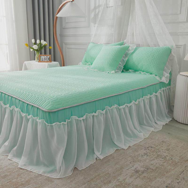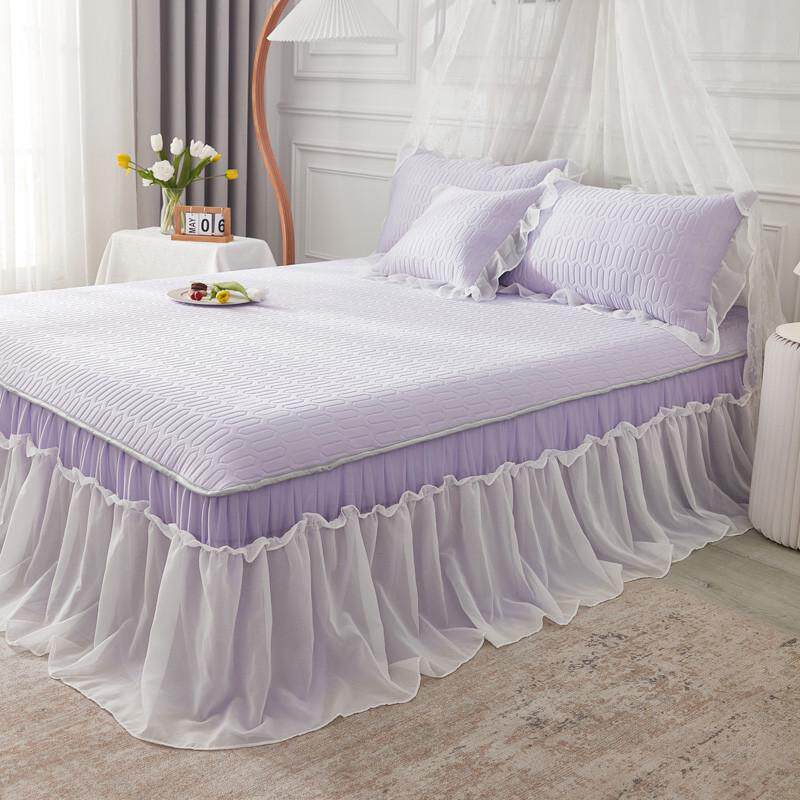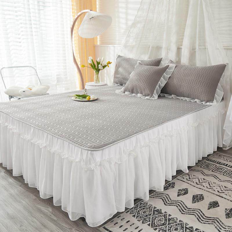 06ym夏日晚风|床裙冰丝乳胶凉席子雪纺空调白纱三件套可折叠纯色