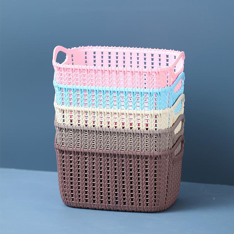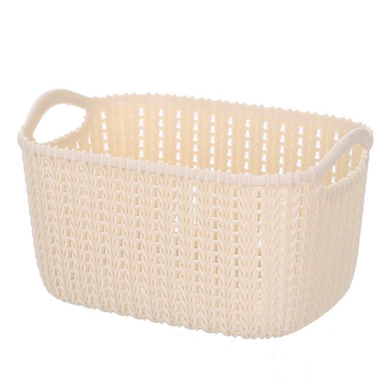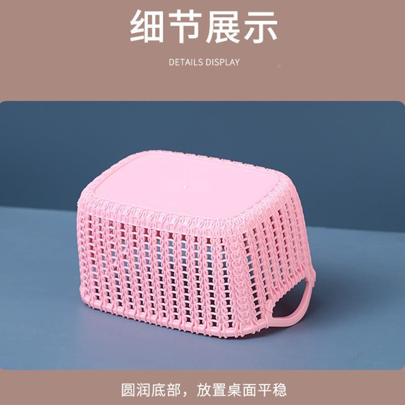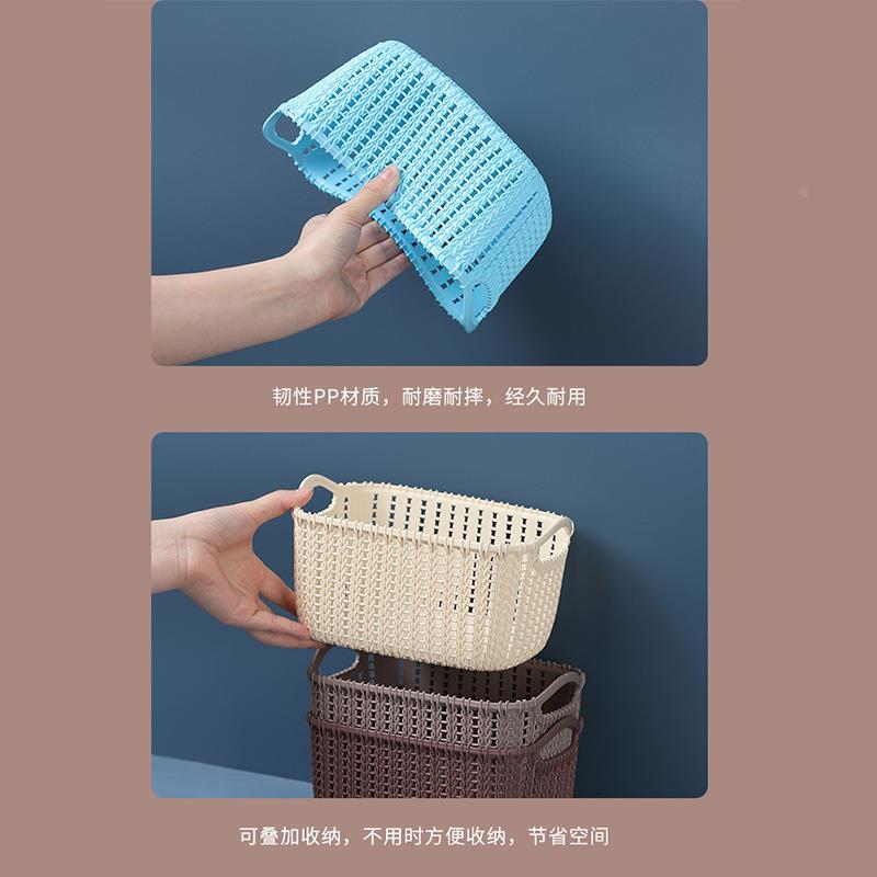 桌面仿藤编收纳筐零食框塑料客厅浴室厨房杂物收纳篮收纳框长方形