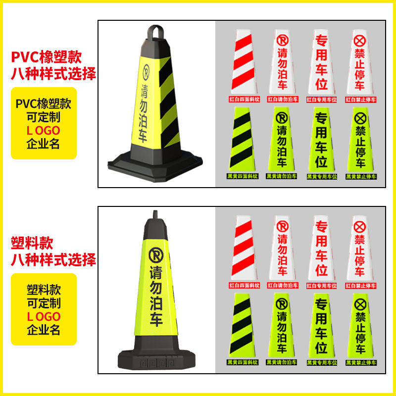 禁止停车警示告示橡胶反光路锥隔离墩请勿泊车交通路障雪糕桶
