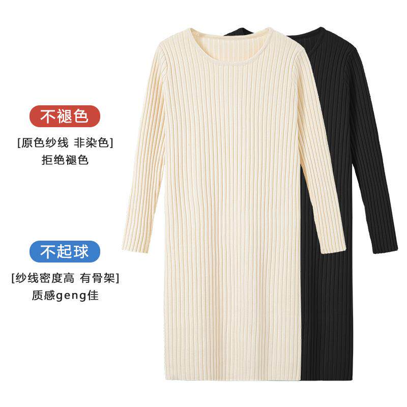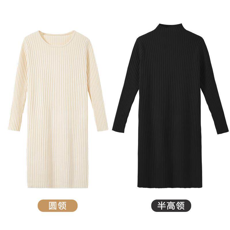 针织连衣裙配大衣半高领秋冬内搭中长款打底过膝小个子气质毛衣裙
