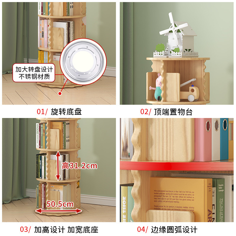 家用图书馆书架儿童阅读书架置物架旋转书架360度书柜收纳整