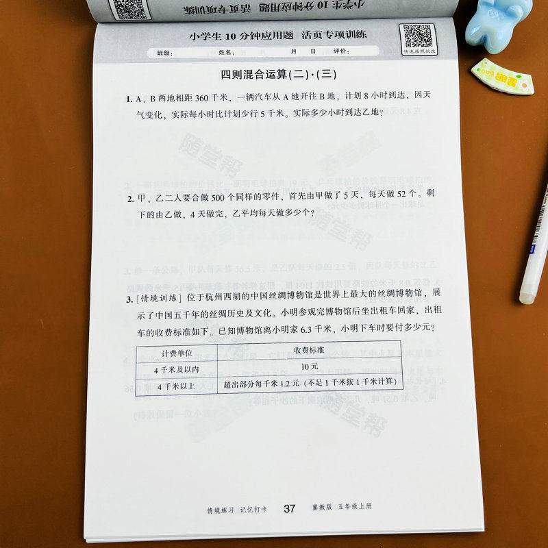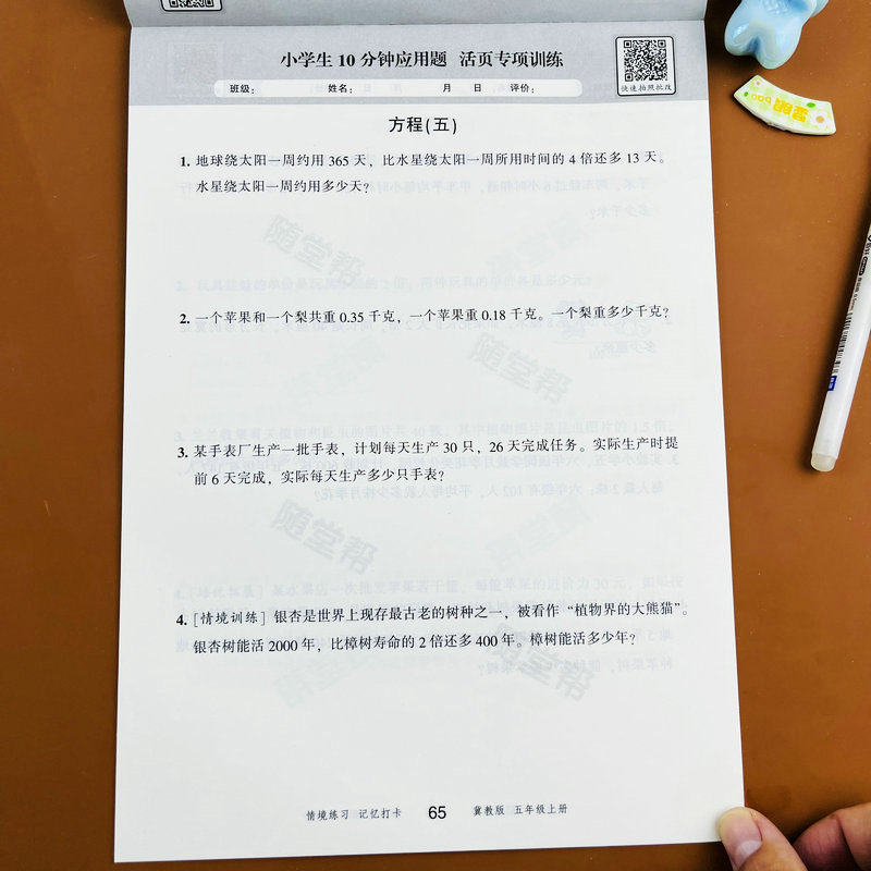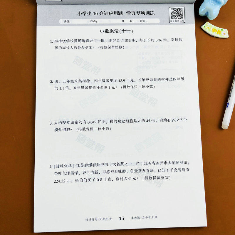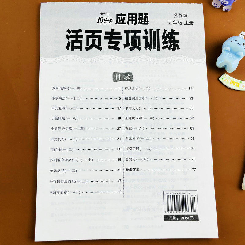 【随堂帮】冀教版五年级上册数学应用题卡活页练习册专项训练课本同步练习册每天10分钟小数乘法小数除法小数混合运算面积方程