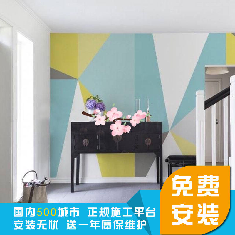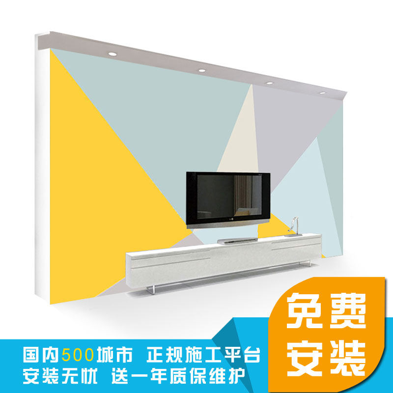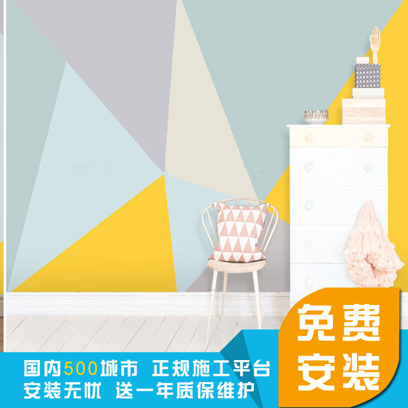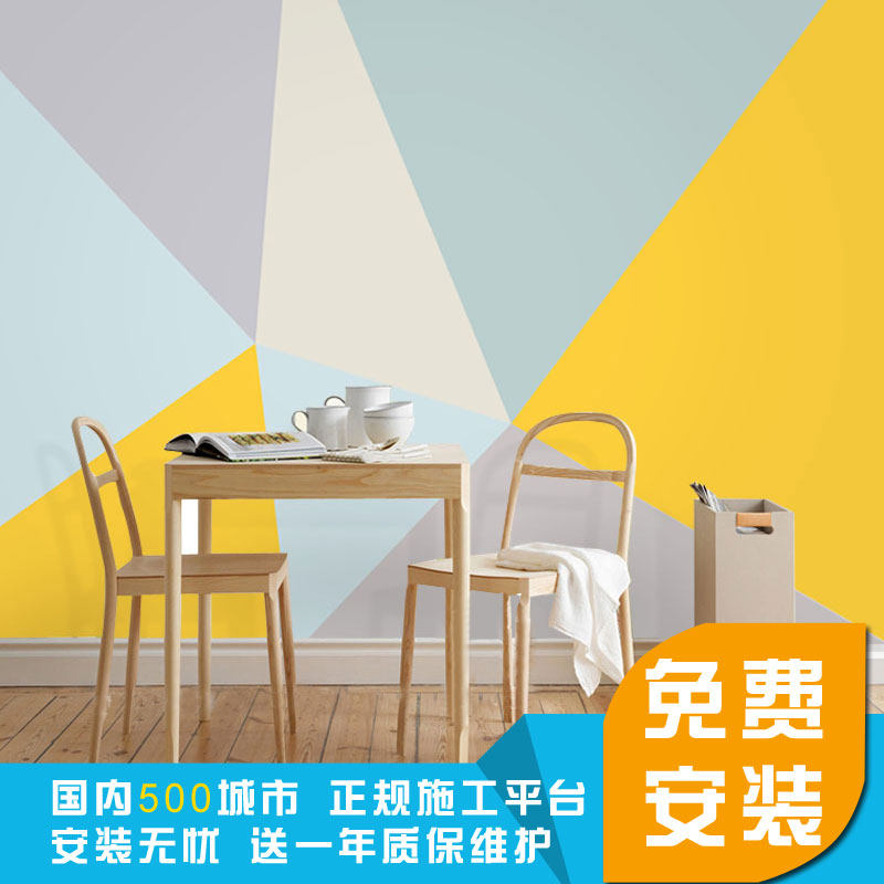 北欧简约几何清新风格色块壁纸客厅电视背景墙定制壁画网红沙发墙