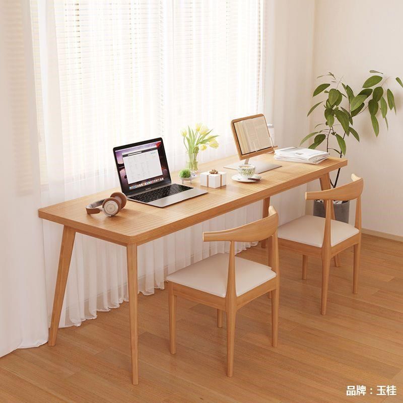 长条桌网红长方形办公桌家用双人书桌H现代简约电脑桌实木腿工作