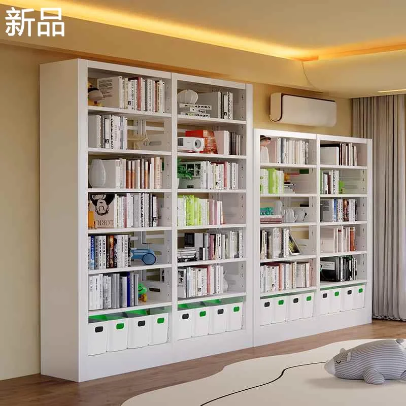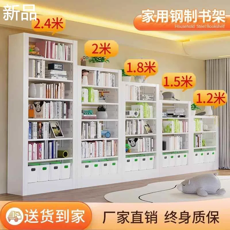 家用钢制书架落地置物架儿童绘本收纳客厅一体靠墙铁艺图书馆新品