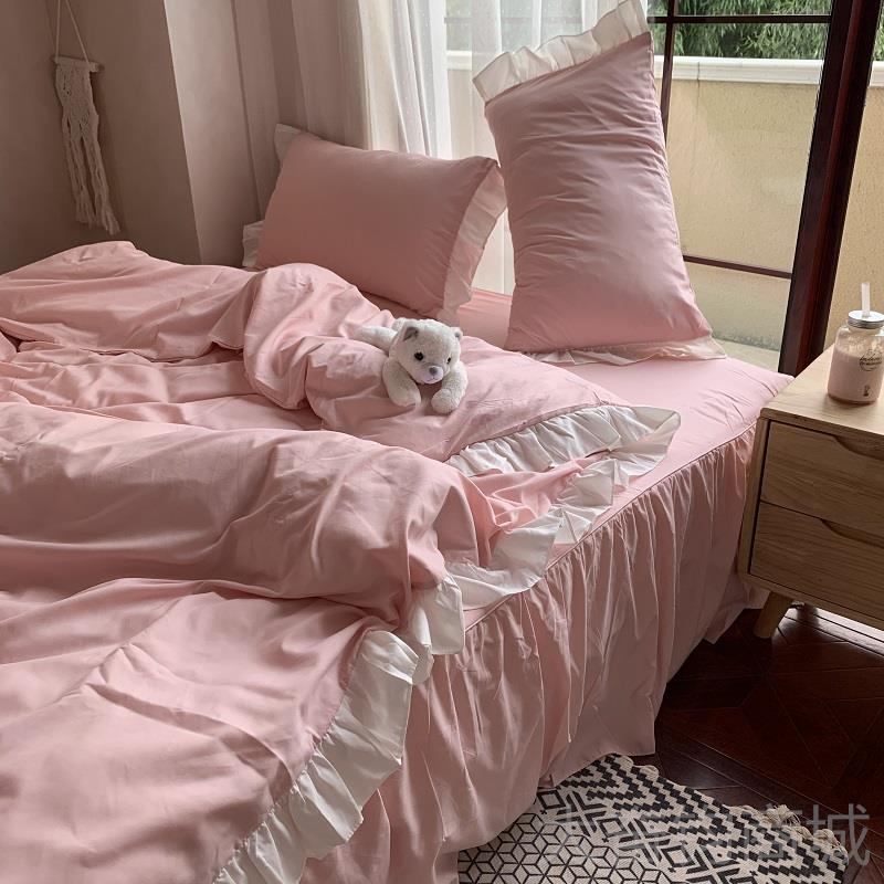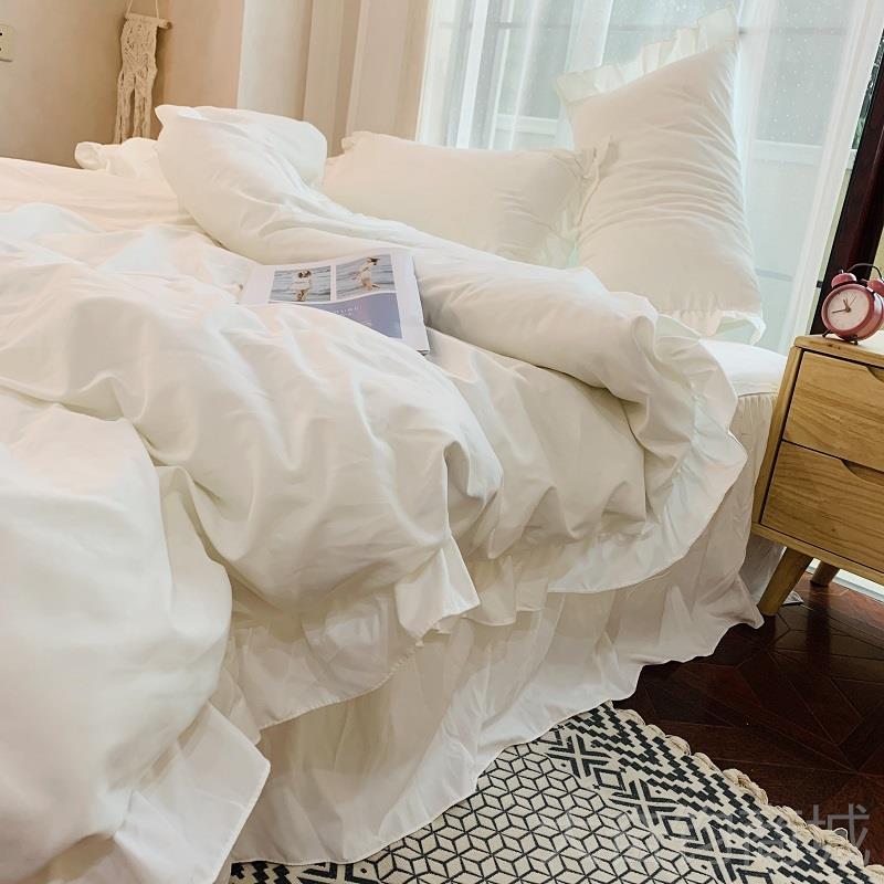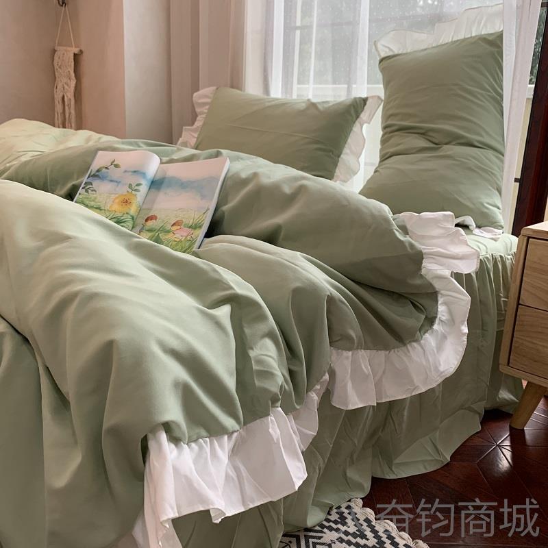 正品日式简约纯灰色1.四件花套in荷叶边被套床单s床裙学生宿舍三8