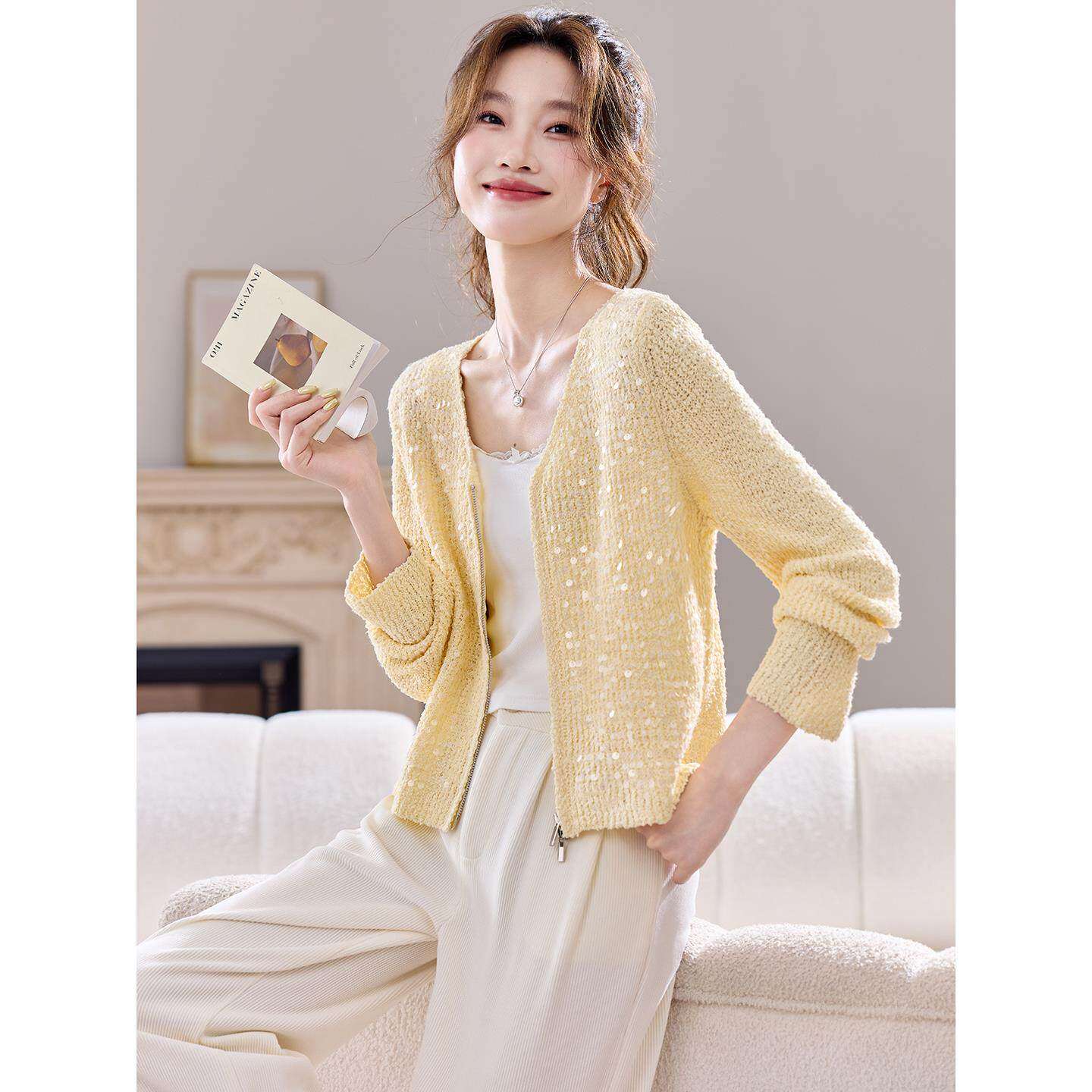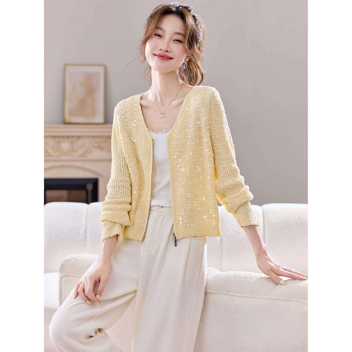 早秋亮片高级感针织开衫外套女春秋季2025新款今年流行爆款短上衣