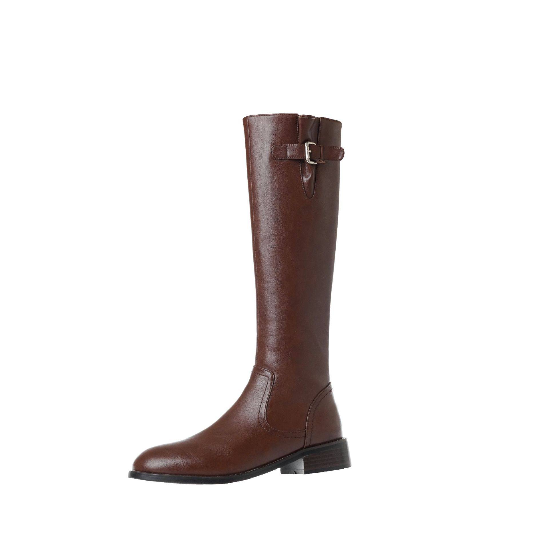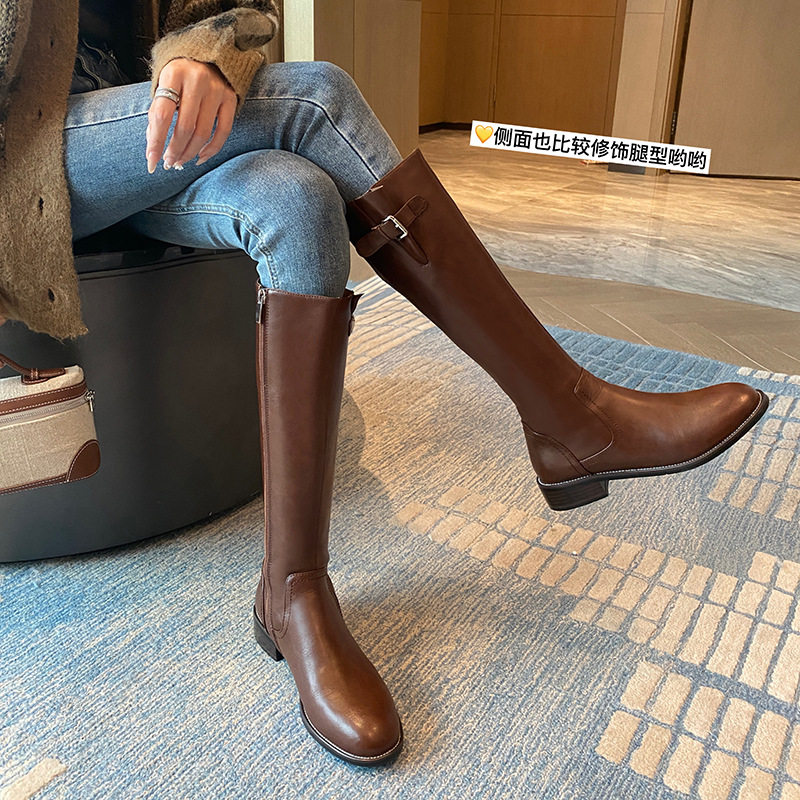 大码女靴子41一43真皮平底高筒靴大筒围女靴胖mm粗腿长筒靴大腿围
