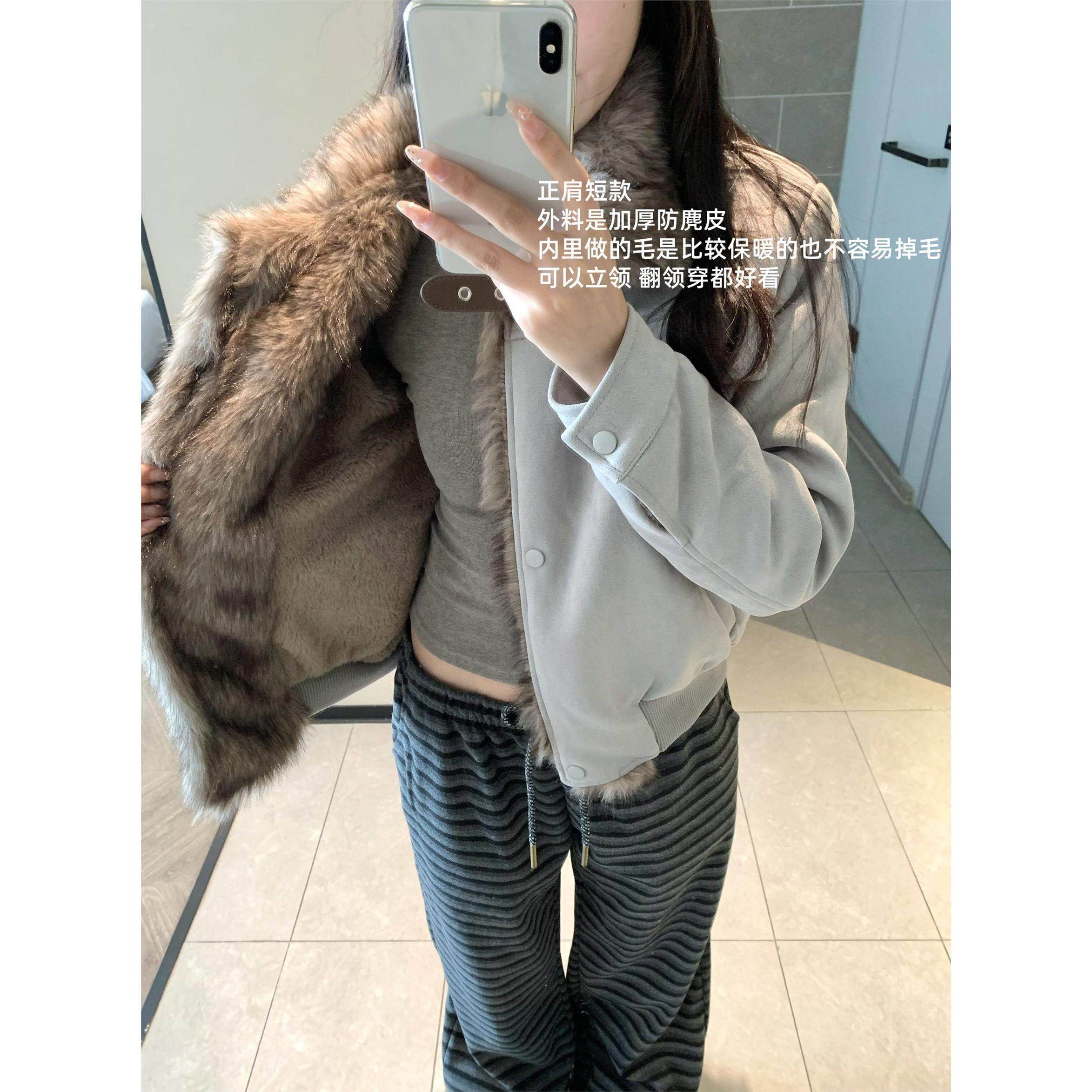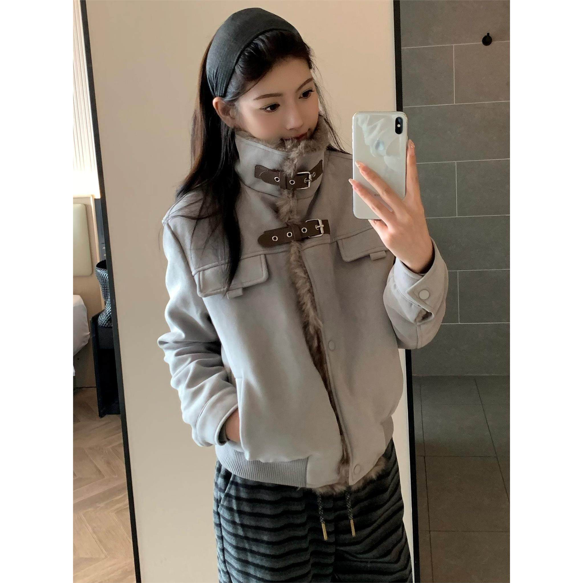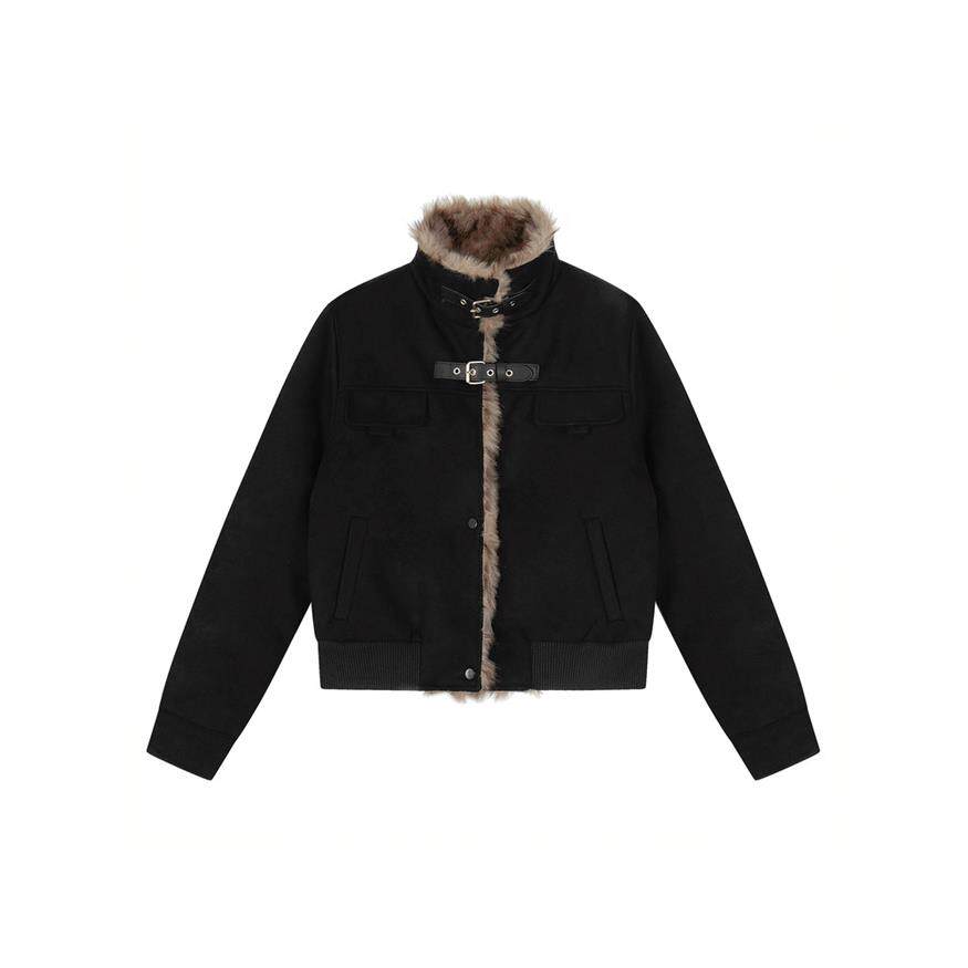 美式覆古毛毛拼接立领机车服夹克情侣冬季加绒加厚短棉衣外套男女