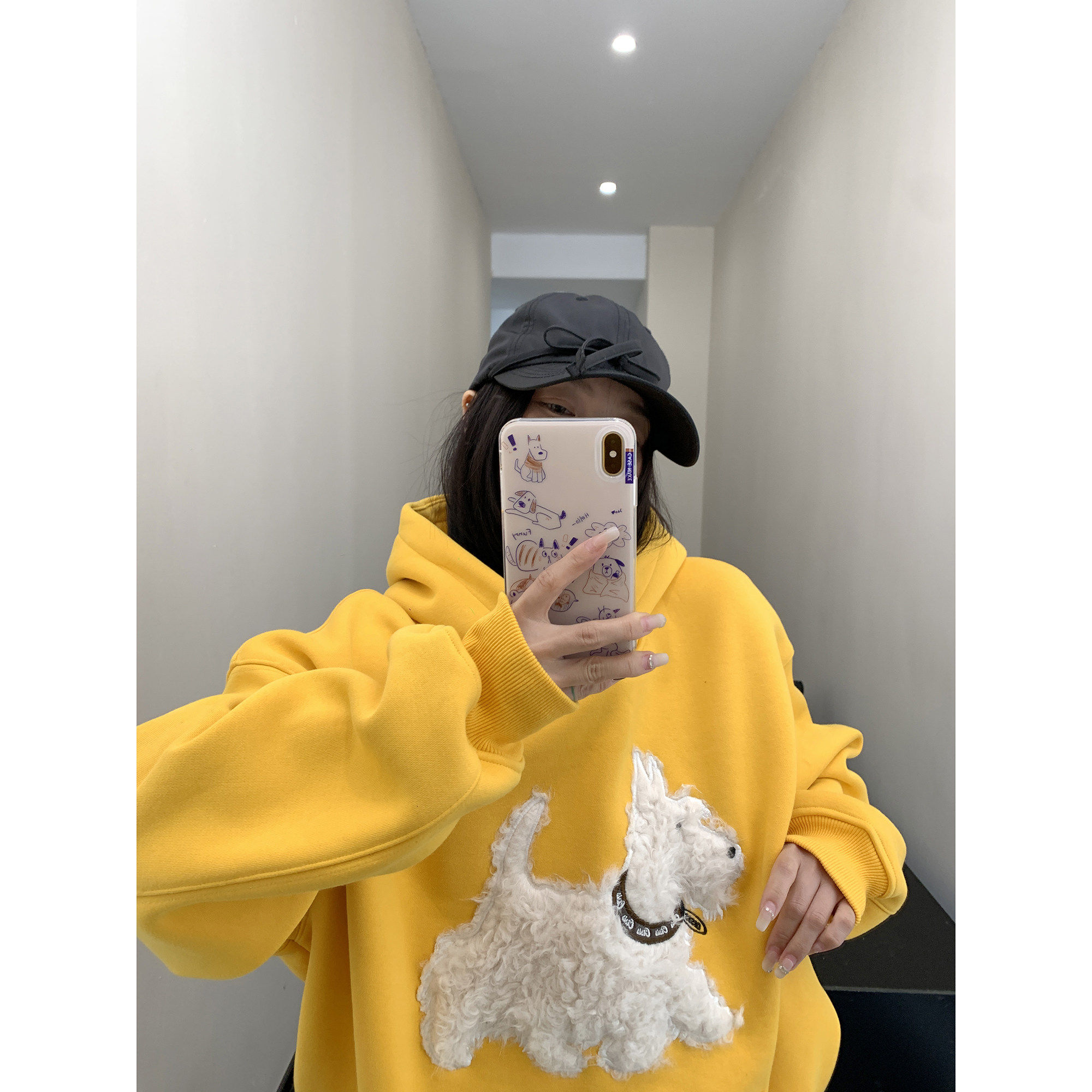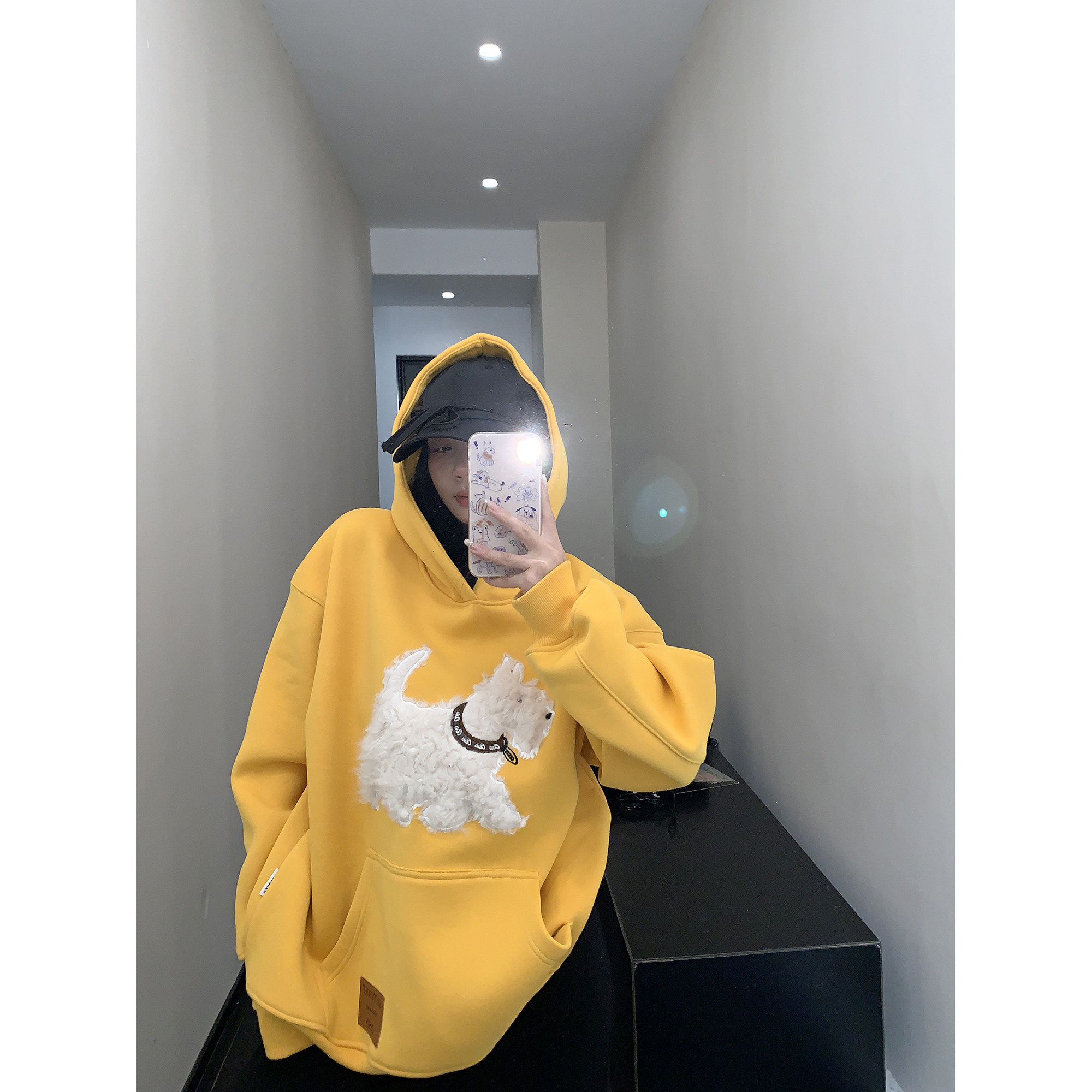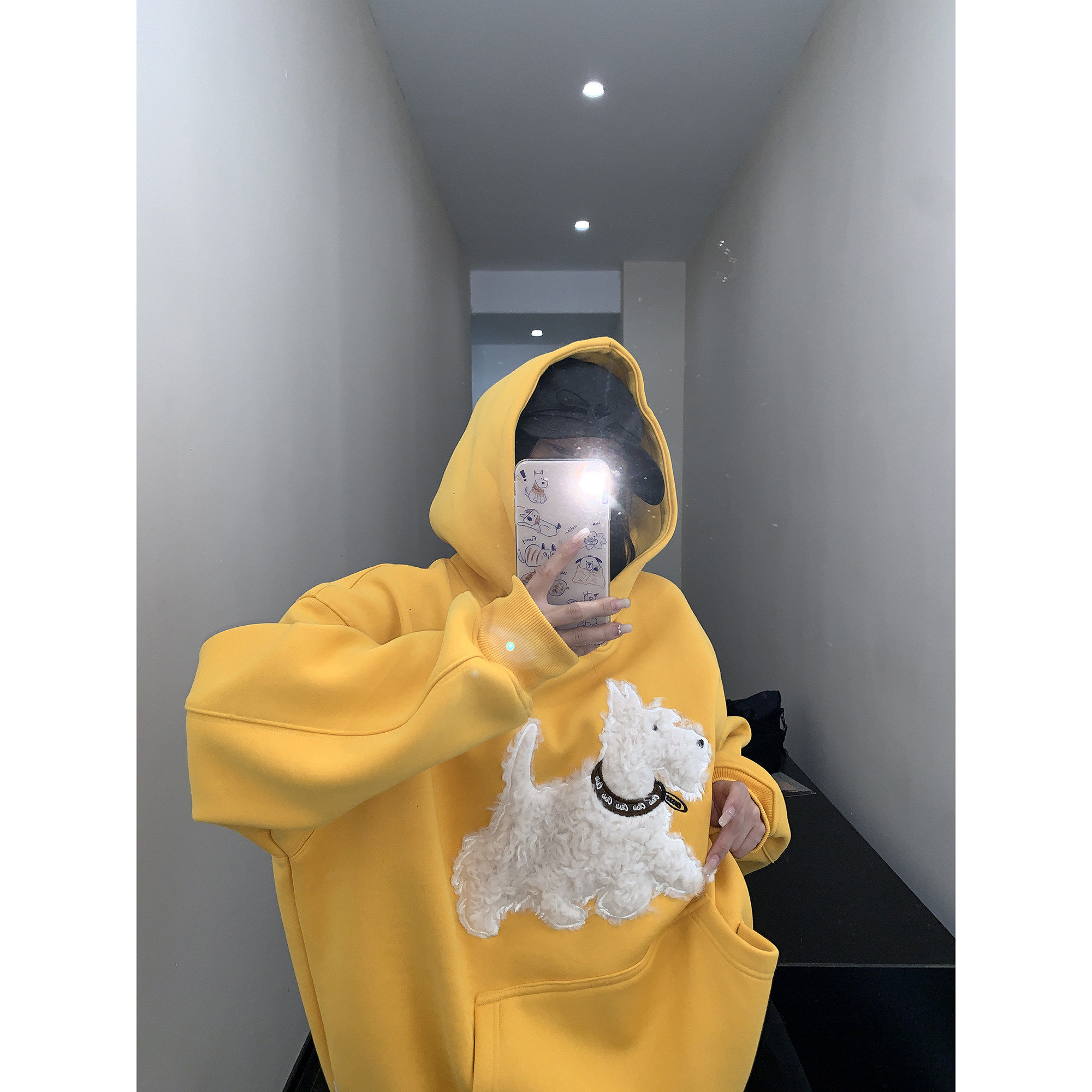 【新品8折抢 10.8 20:00】废柴覆古重磅加绒卡通毛绒刺绣连帽卫衣