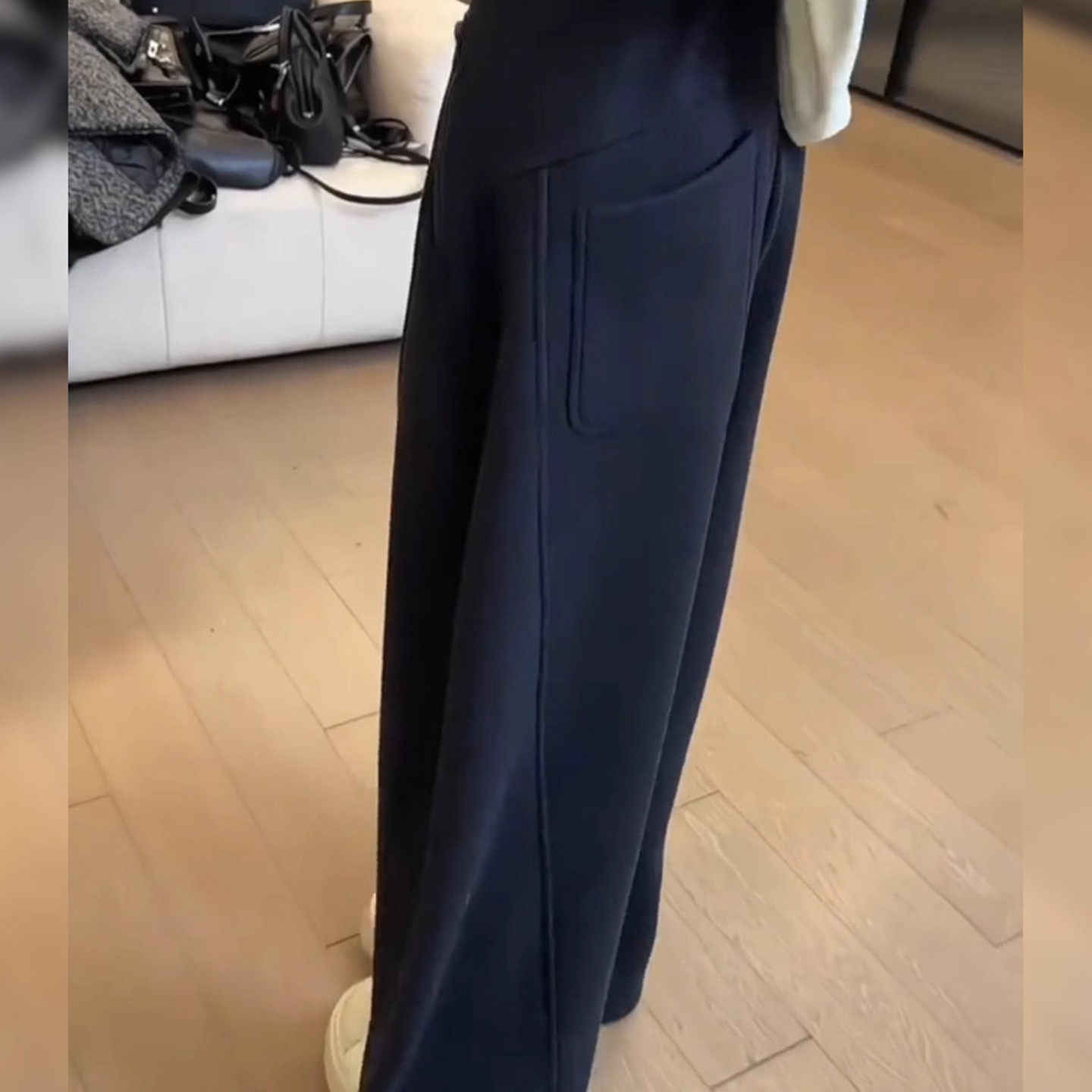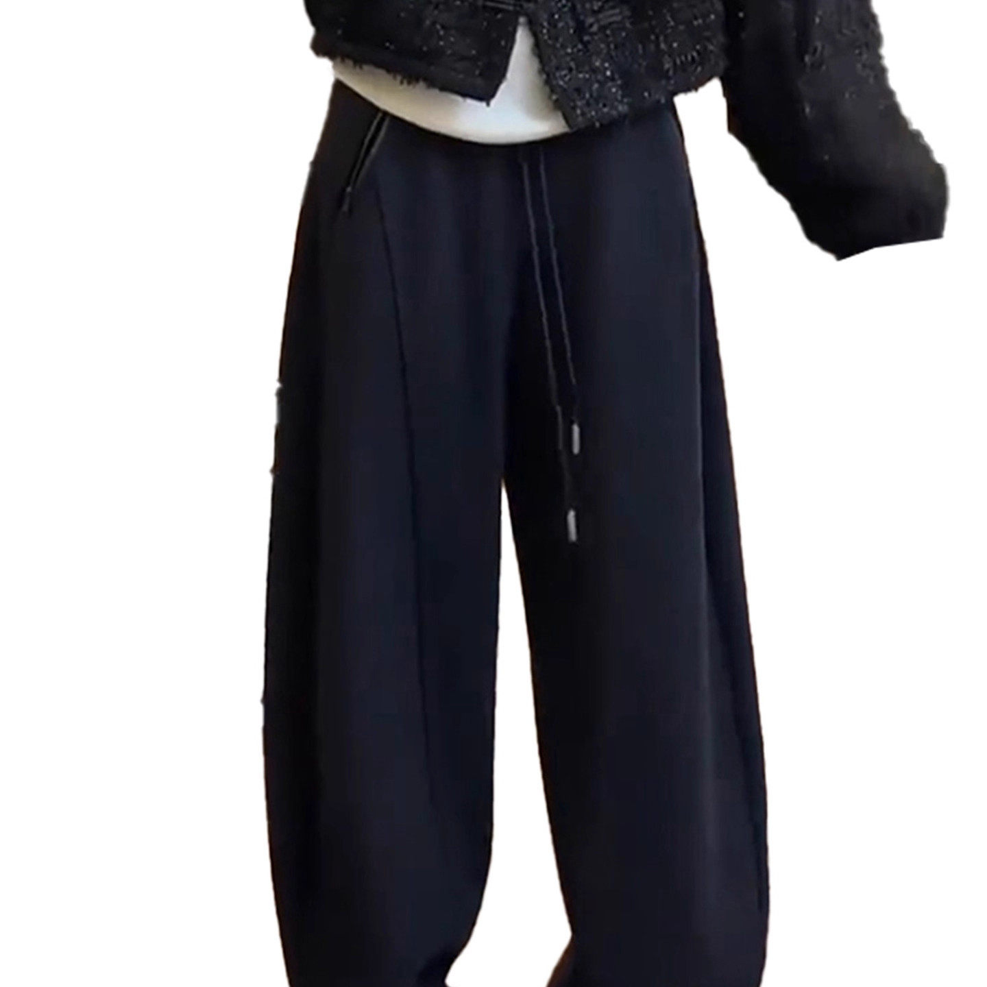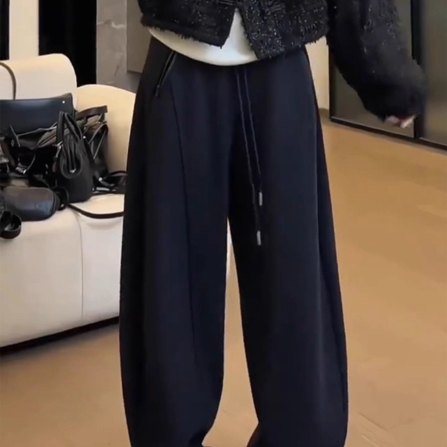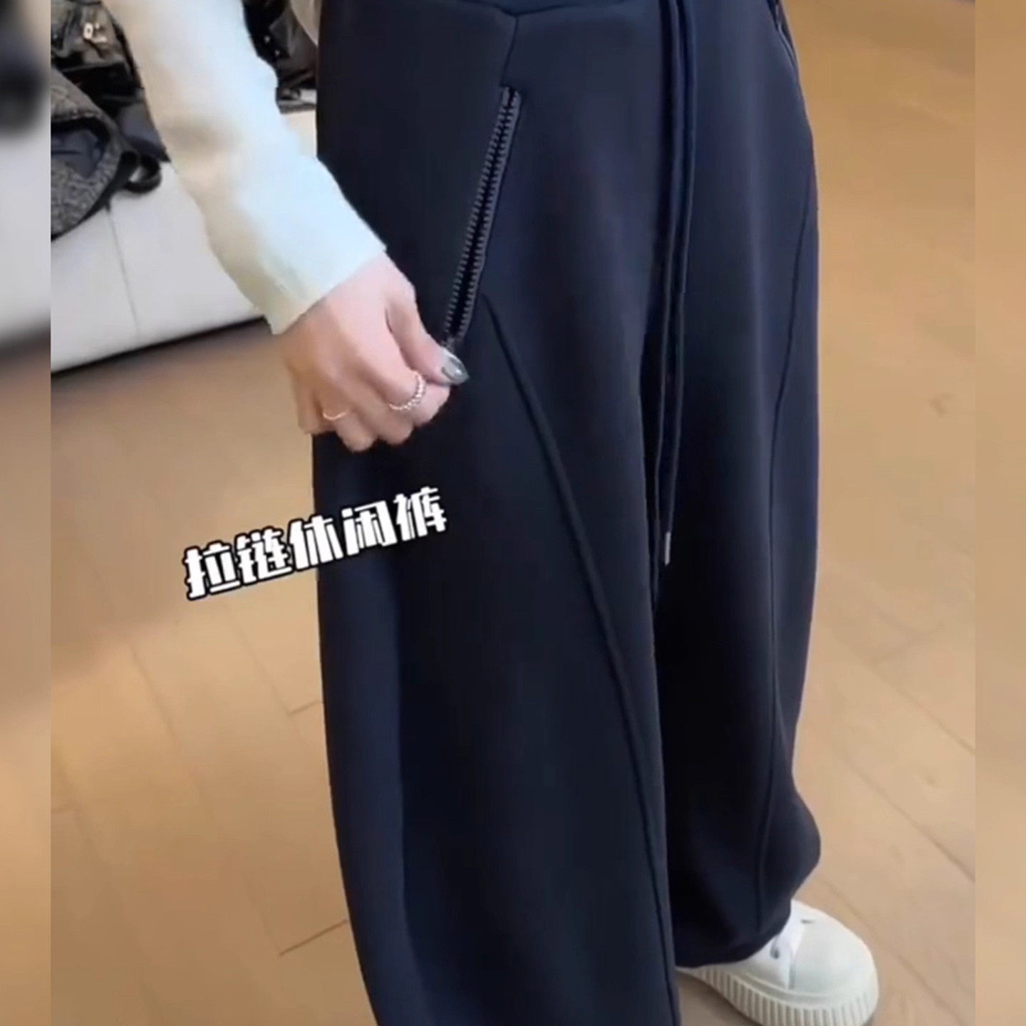口袋拉链弯刀卫裤女秋冬新款大码胖mm高腰宽松显瘦抽绳加绒阔腿裤