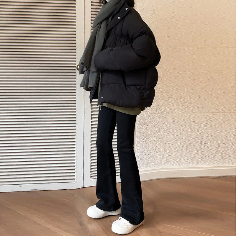 黑色加绒喇叭裤薄绒微喇牛仔裤女秋冬加厚2024新款高腰小个子裤子