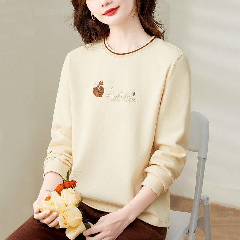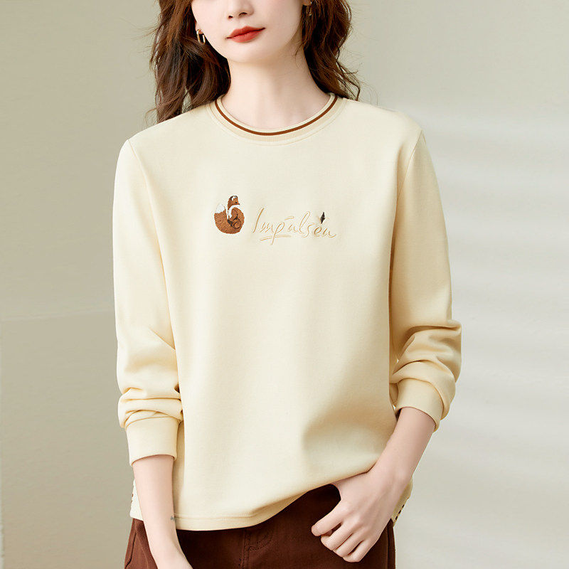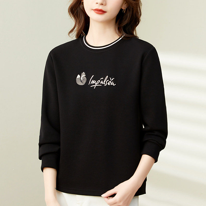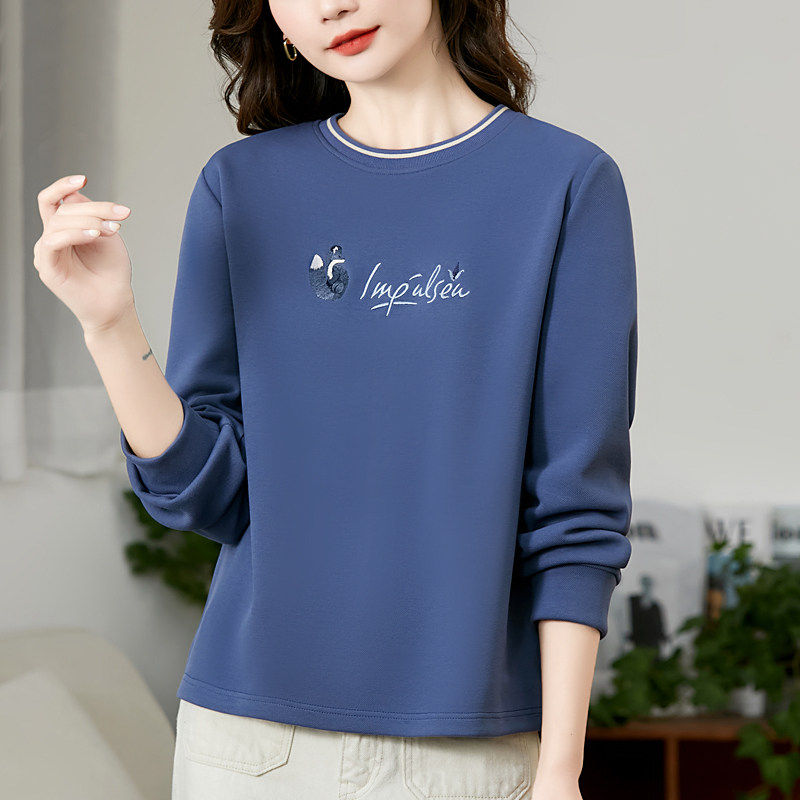 圆领厚棉T女春装2025年新款爆款棉质正肩上衣大尺码女装宽松长袖T