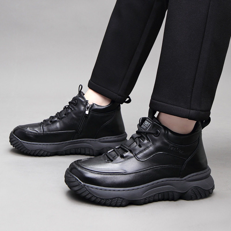 高端男士2025冬季新款大棉鞋真皮防滑高帮加厚保暖羊毛休闲皮鞋