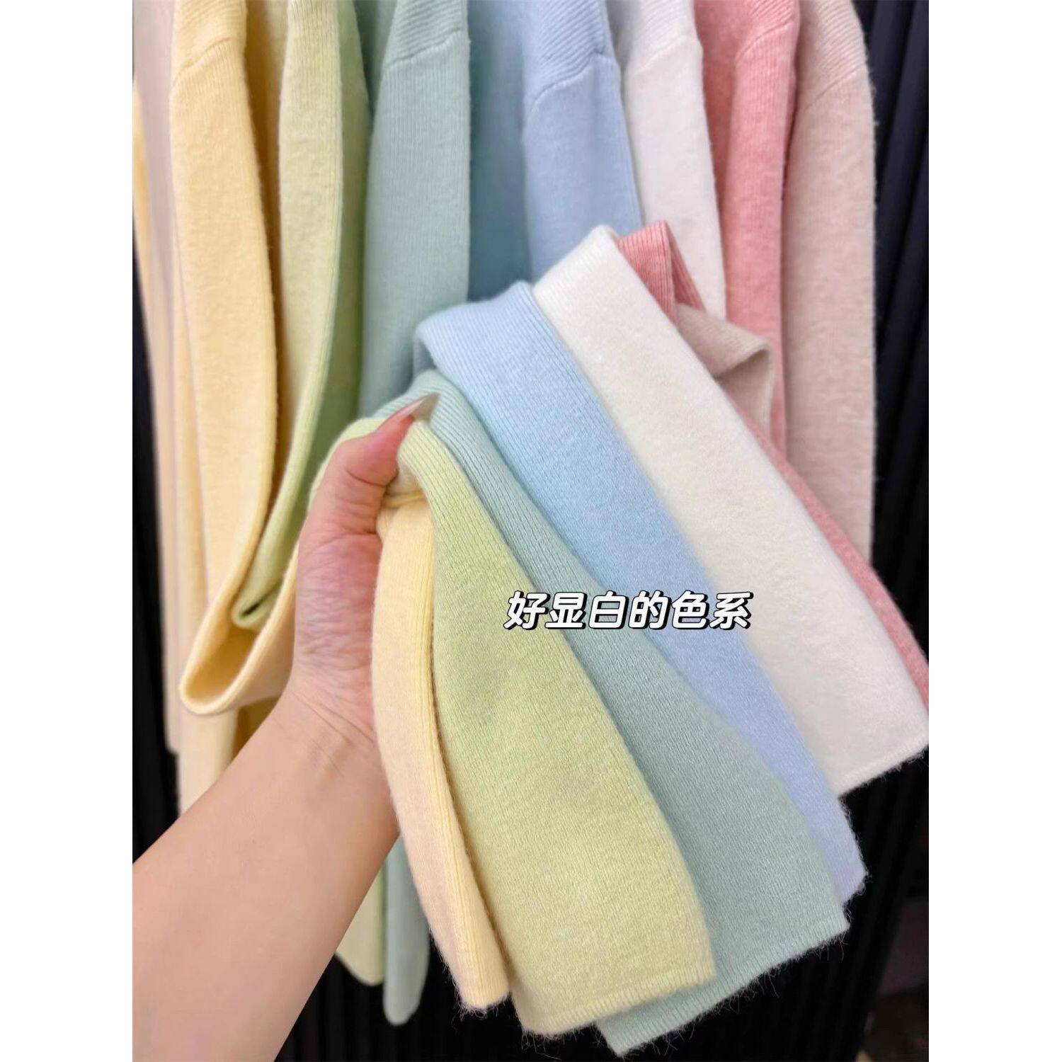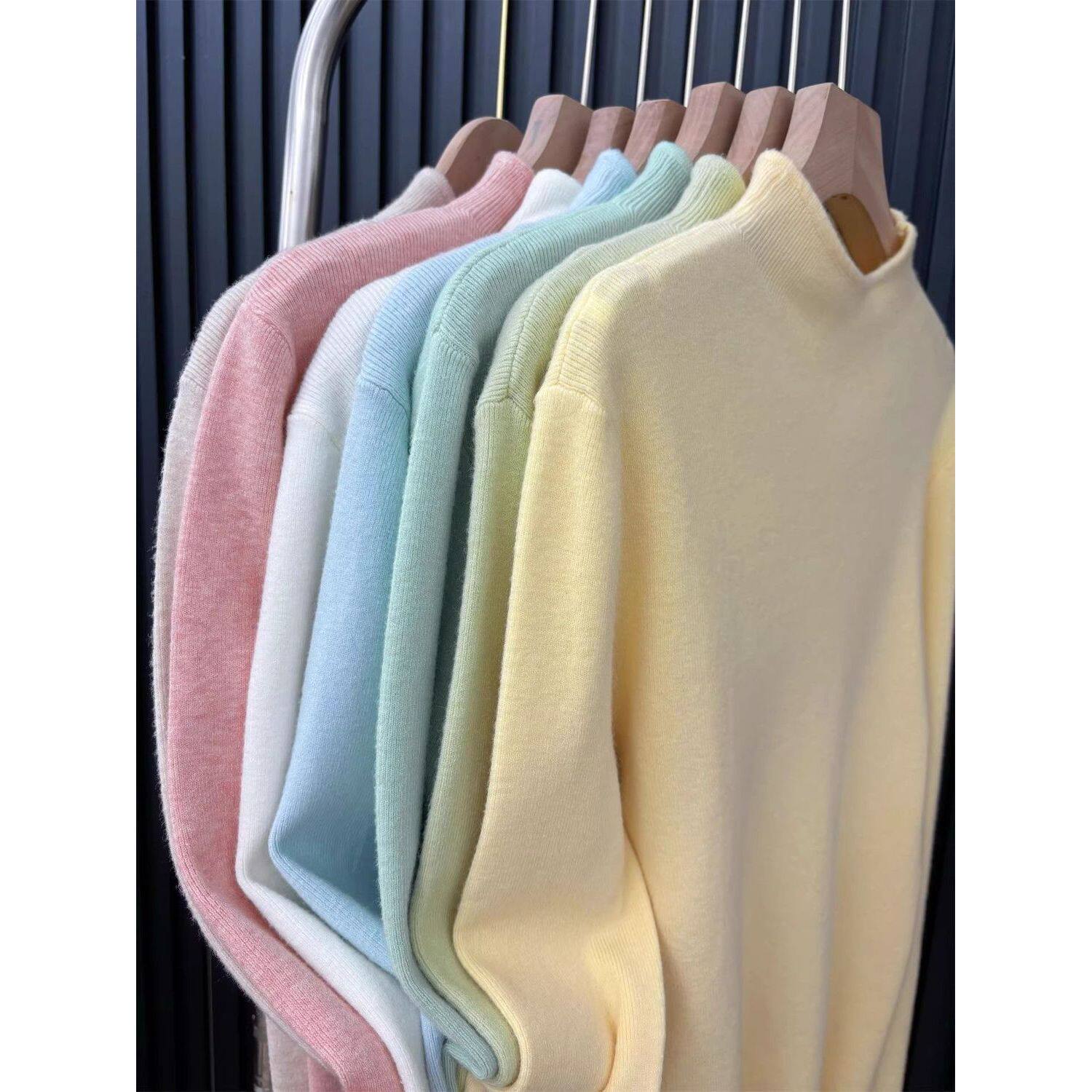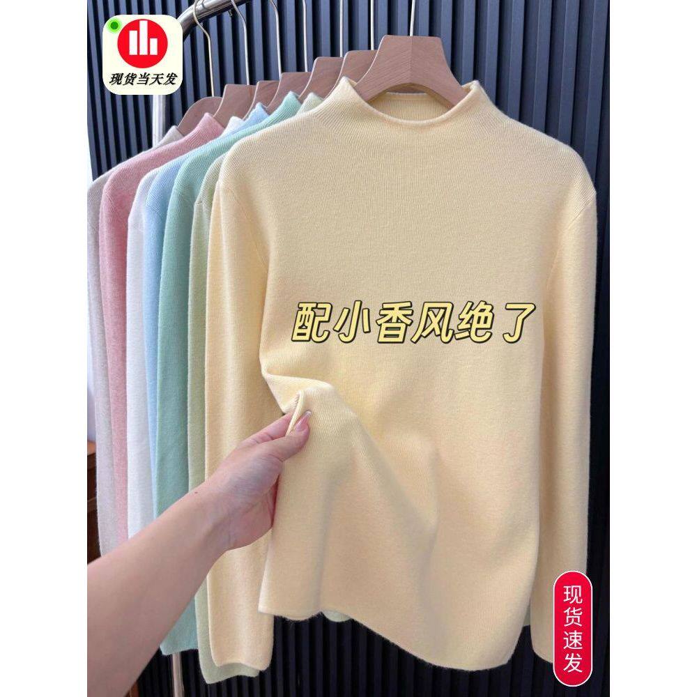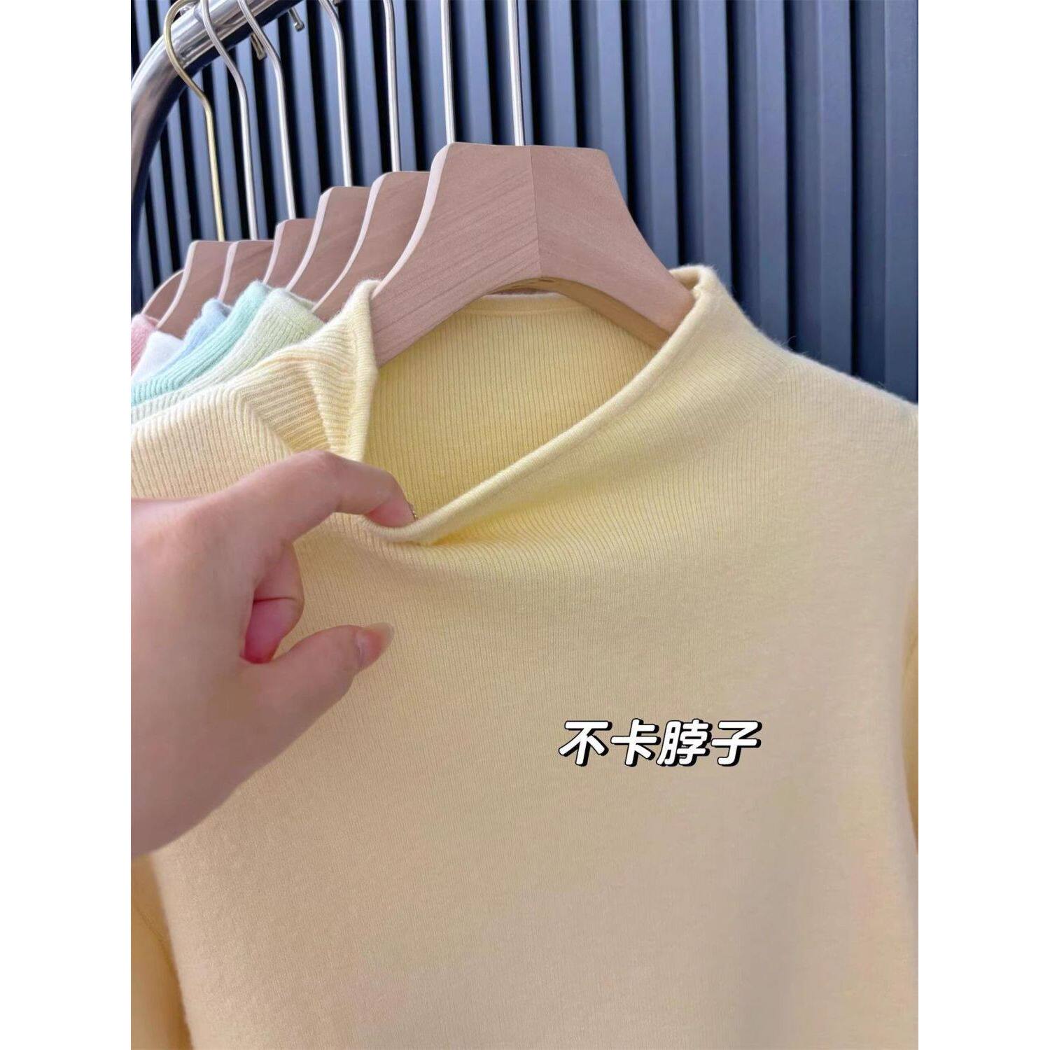 广州十三行女装!超显白奶黄半高领针织打底衫女冬季内搭显瘦毛衣