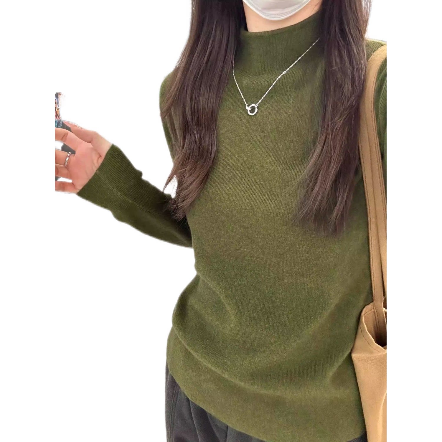 绝美复古墨绿色miu系打底衫女秋冬保暖针织内搭立领毛衣软糯上衣