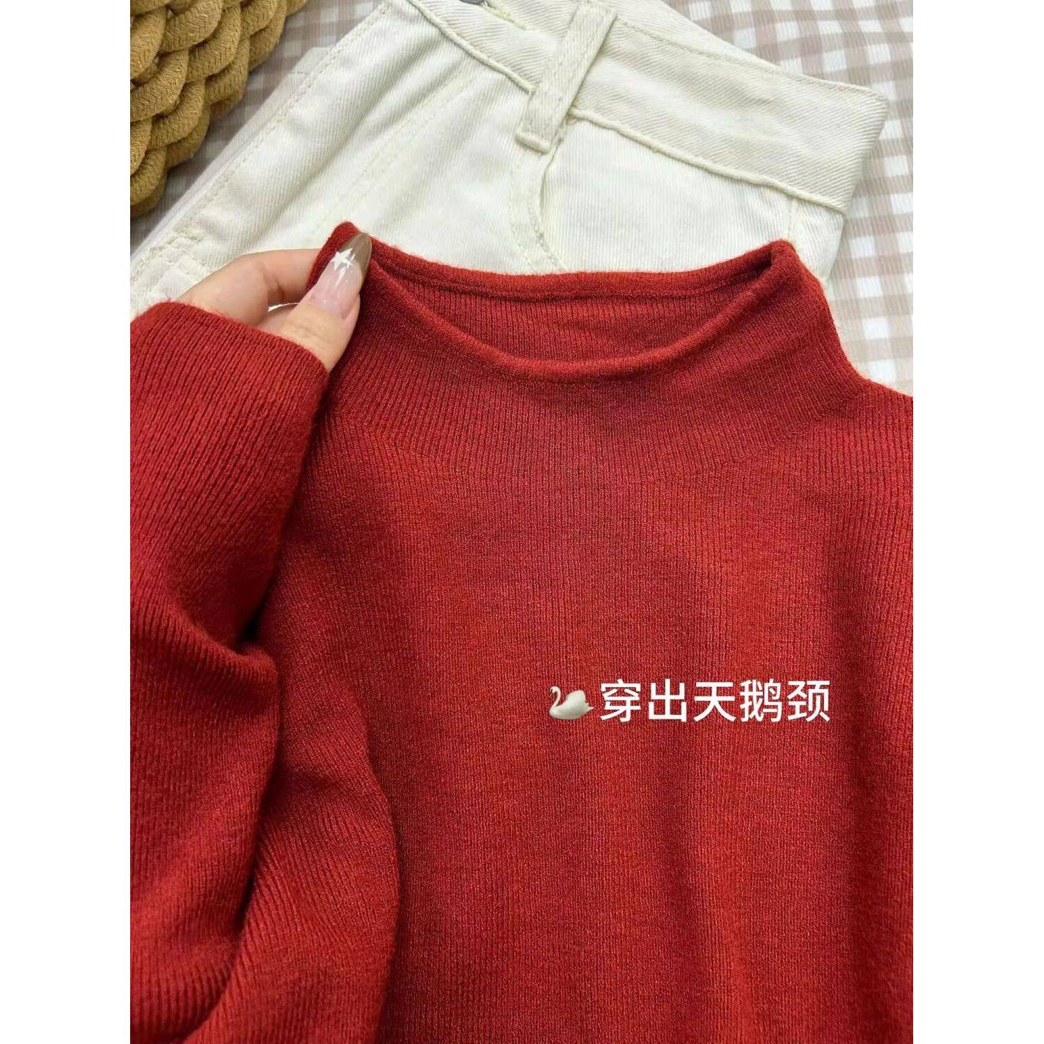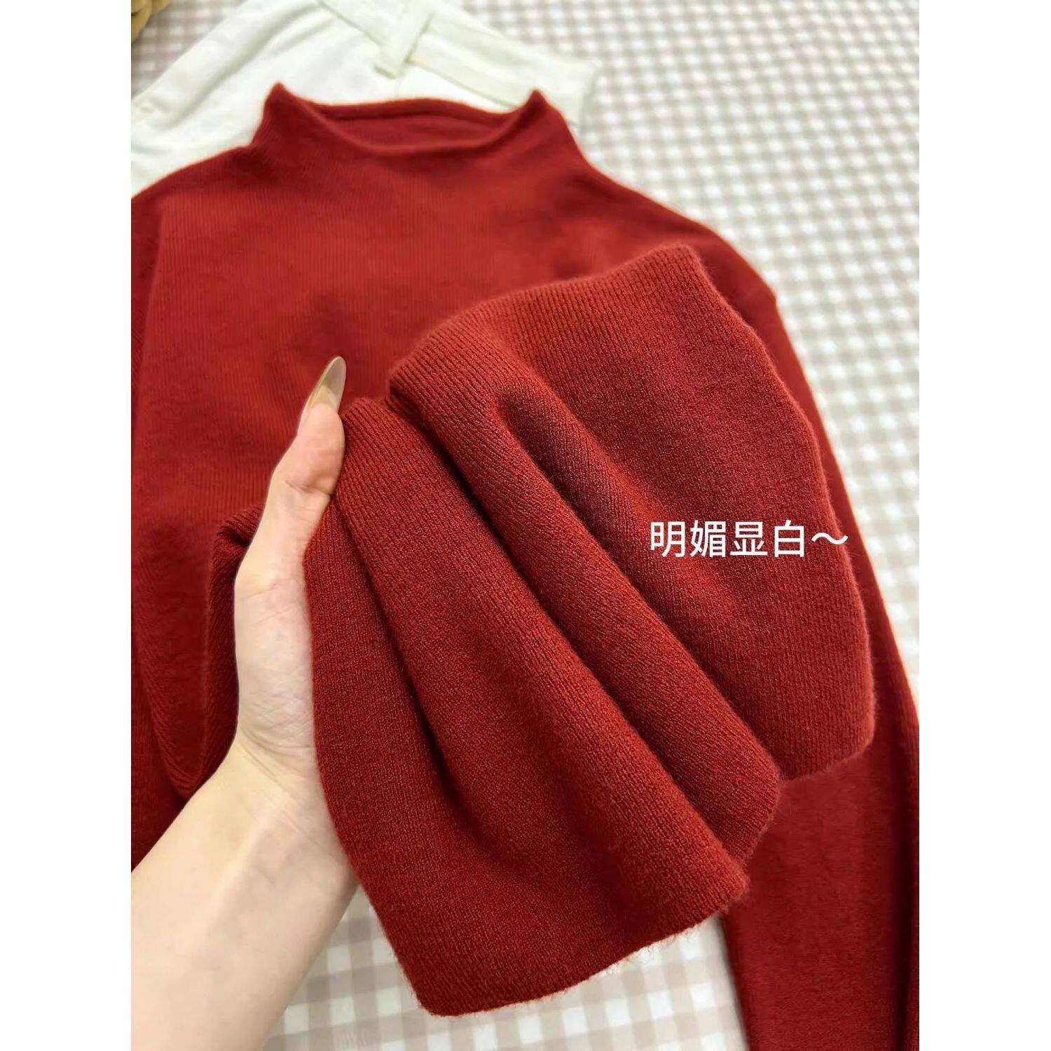 新年限定氛围感安哥拉红打底衫女内搭秋冬毛衣半高领长袖针织上衣